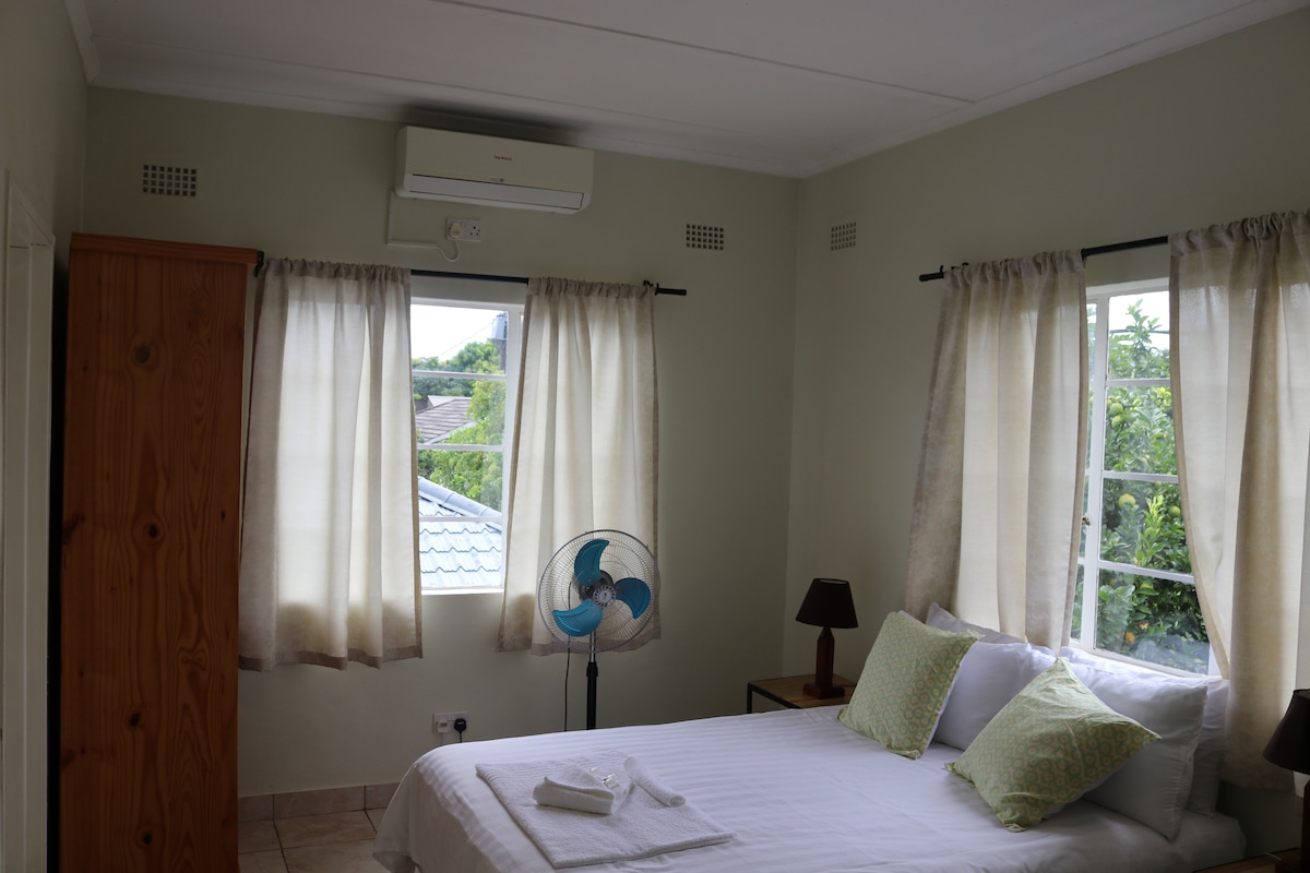 This cosy cottage has two rooms, one double bed and two single beds in the other rooms. A small kitchen line is provided in the living room, where a microwave will serve your needs, or use your private barbecue area on the private terrasse. Our shared area is an open plan kitchen where our chef caters all your meals, dining and lounge, this area is shared with guests from chalets and tented chalets under our massive Natal mahogany tree, swimming pool with most awesome kids play area.