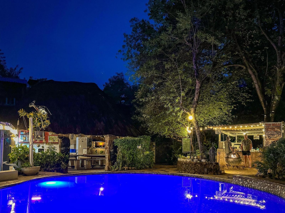 Capture the exotic flair of Zimbabwean culture and indigenous art with affordable comfort and friendly service. Our eye catching accommodation is scattered across our luscious garden of which our swimming pool and fire place forms the center piece providing a delightful setting for interacting with other travelers or to simply relax. This room is a twin room with two single beds and shared bathrooms, you can use the self catering kitchen or order meals from our Bush Cafe, wifi is at a cost.