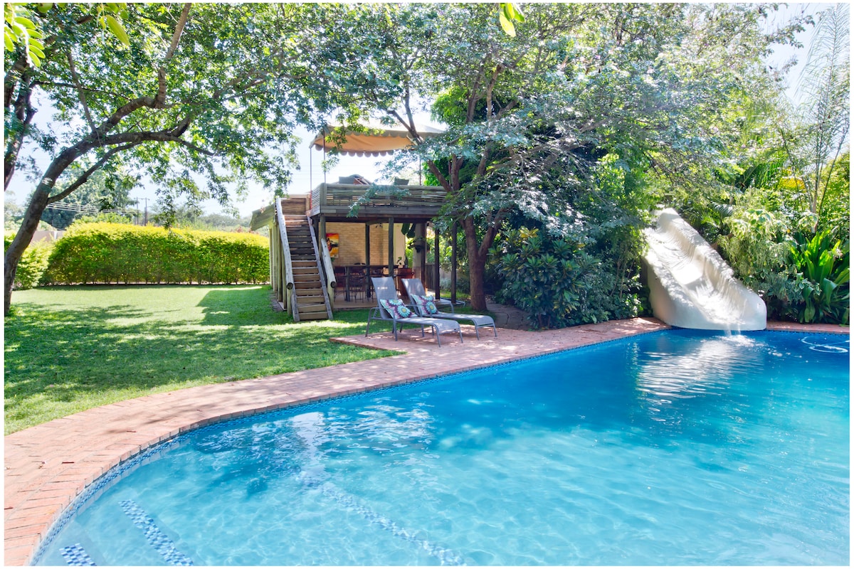 A beautiful 5 bedroom home in the heart of Victoria Falls, located in a quiet leafy suburb. This property comes with all the facilities you need for an amazing homestay experience, Large Kitchen, pool and entertainment area. Aj and Jess your hosts are here to take care of anything you need and can easily arrange for Transport and Activities. Catering can be included if you don't want to think about cooking.