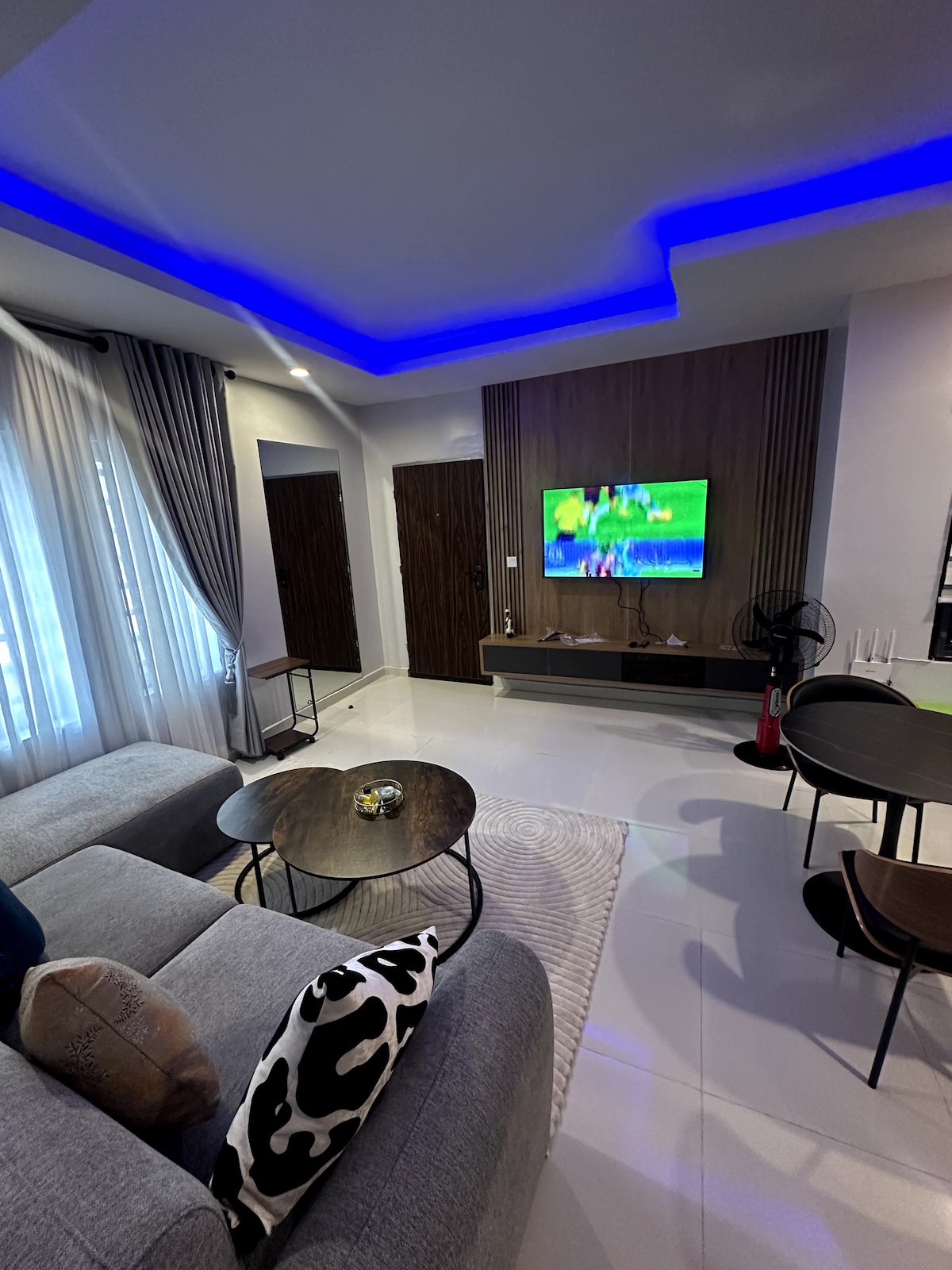 Welcome to Elmstead Luxury Aprt , your stylish retreat in Lekki Ikota. This 2BR/2BA haven offers A/C comfort, a 65″ TV in the living room, 43″ TV in bedrooms, free stable unlimited Wi-Fi, and 24/7 power with inverter & solar. Enjoy smartlock self check-in, free parking, an in-unit washer, and a kids’ bouncing castle. 1 Free cleaning for stays over 5-6 nights. Close to Lekki conservation Center, Mega Chicken, Blackbell & Blemco. perfect for solo travelers, business guests, families, or long stay