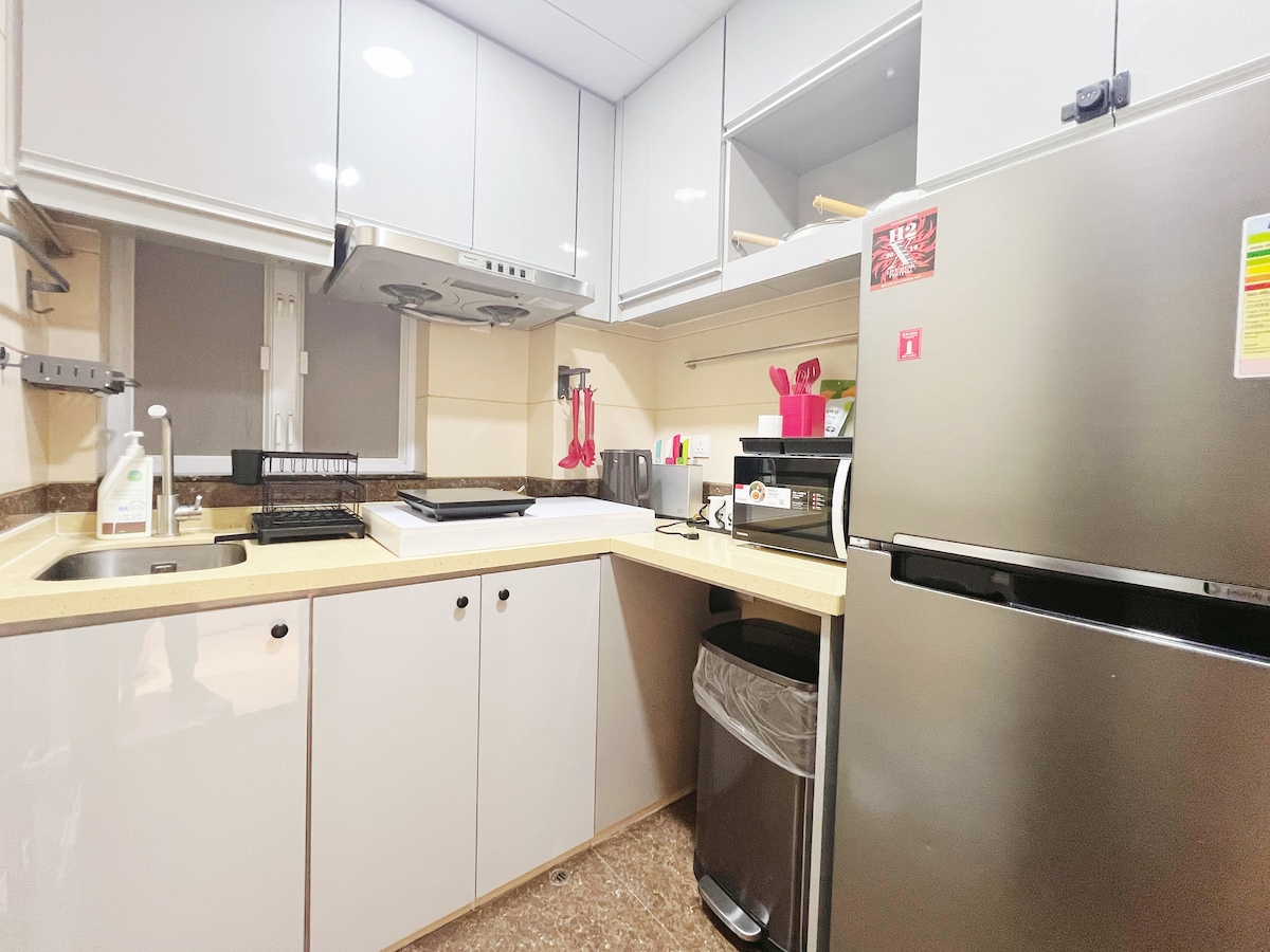 歡迎來到香港時尚的市中心度假村! 從我的住處體驗香港充滿活力的心臟,距離標誌性的廟街夜市僅2分鐘步行路程。 交通便利: 3分鐘至佐敦地鐵站 8至10分鐘可達西九龍高鐵站及九龍站(香港機場快線)。 附近景點(步行15分鐘內): 尖沙咀,維多利亞港, 科學博物館 ,西九龍文化中心, M+博物館, 海港城、九龍公園、 K11購物中心 舒適的住宿: 兩間客房,兩張1.35米雙人牀(一張高牀) 舒適的沙發和兩個帶獨立書桌的衣櫃 帶無線網絡和網飛的50英寸電視 設備齊全的廚房: 冰箱、水壺、微波爐、電磁爐、電飯煲、炒鍋和湯鍋 餐飲必需品:碗、餐具、筷子、勺子、酒杯和基本調料 現代浴室設施: 毛巾、浴巾、洗髮水、護髮素、沐浴露、洗衣機和洗衣液 附加功能: 樓下的各種餐館和咖啡店 方便的訪問和24小時在線諮詢 使用密碼鎖安全進入 注意事項:28天租約 根據香港政府規定,民宿的預約天數至少為28天。如果你預訂天數少於此天數,則需要同意以入住日期起生效的28天租約協議。