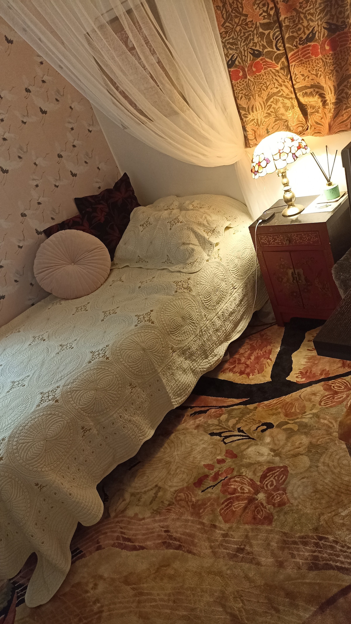 Stylish bohemian centrally located apartment in Chinese town house. Sea view from private balcony, only 5 minutes walk from the ferry or to the beach. Unique artistic and tasteful interior decor, cozy atmosphere and lovely high ceilings. Quiet neighborhood where you can hear the birds sing in the morning. 3 minutes from laundry, supermarket, shops and restaurants.
