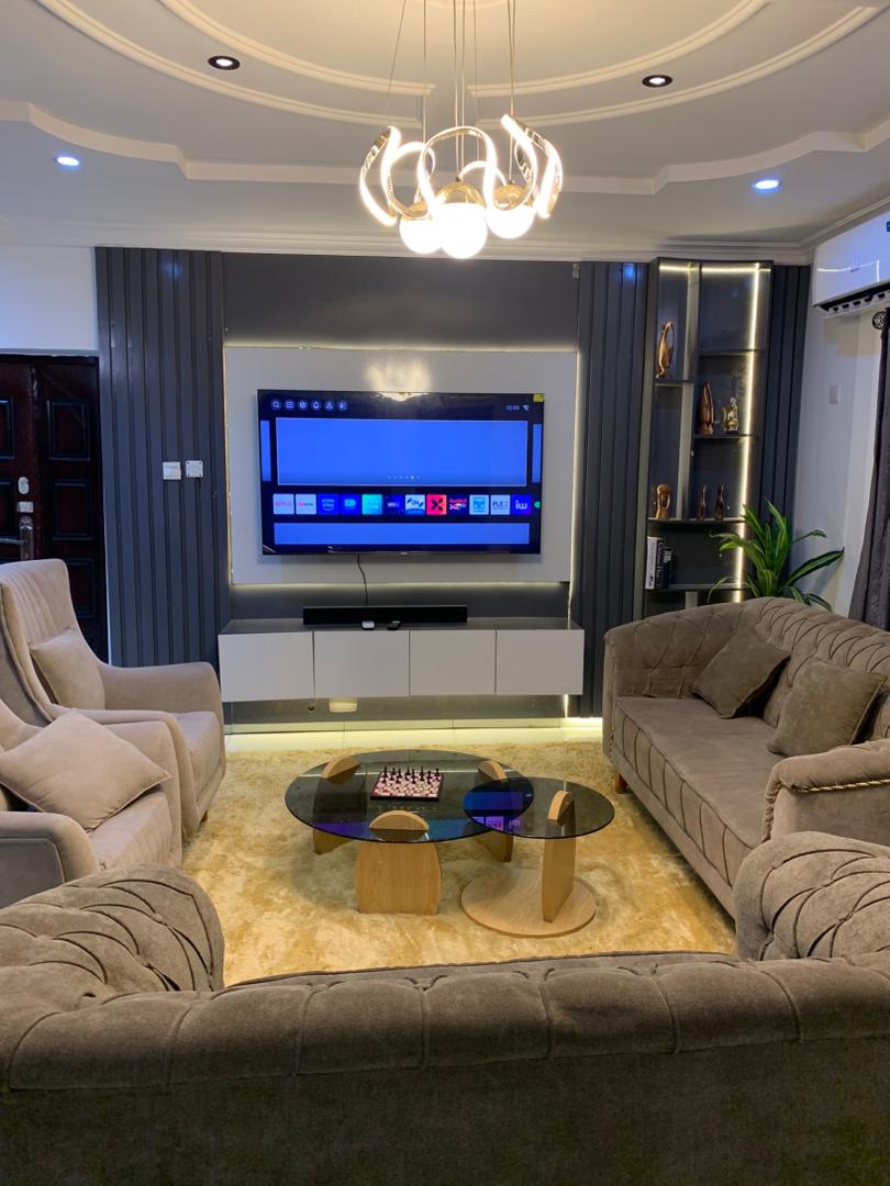 Our beautiful 4-bedroom duplex is located in the serene and secure Lekki Palm City Estate, Offering a perfect blend of comfort, elegance and functionality. The apartment boasts a breathtaking lake view that brings peace and calm, making it ideal for both relaxation and work-from-home stays. With 24/7 electricity and wide range of amenities to cater to your needs, our home guarantees a seamless and enjoyable experience. everything is in place to make your time absolutely unforgettable.