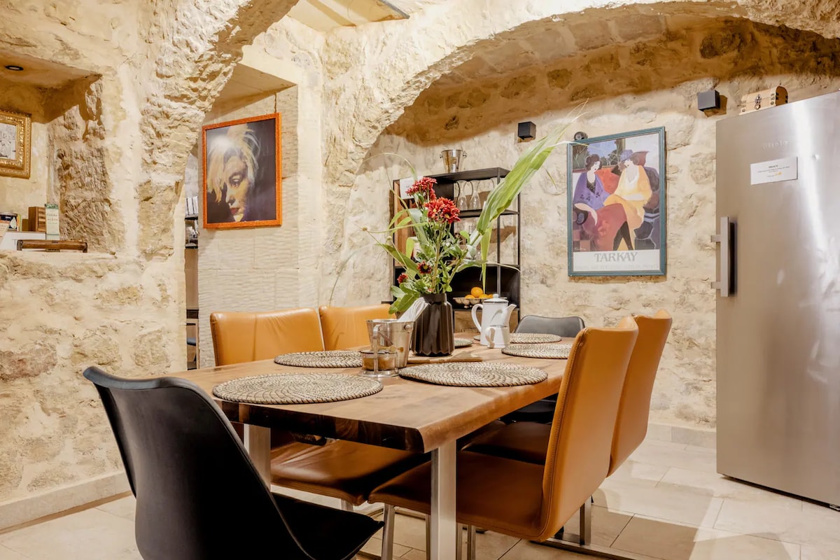 The place has an abundance of traditional features: patterned hand-made floor tiles, soaring ceilings, timber beams, hand-made wrought iron railings and natural golden-stone walls that will take you back in time while you immerse yourself in the heart of this ancient vibrant town.