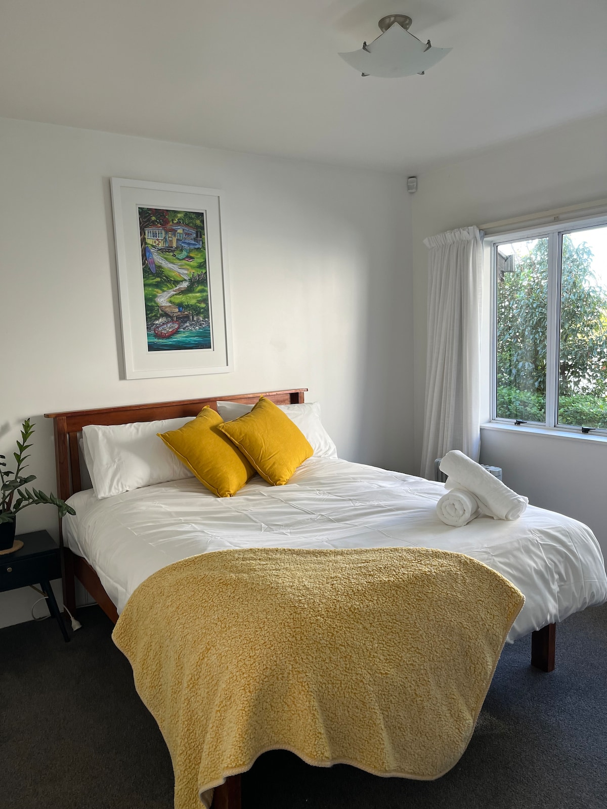 Unique opportunity to wake up with the sunrise and uninterupted sea & Rangitoto views in our modern, spacious apartment. Easy walking to either Takapuna or Milford for shopping and some great cafe and restaurant choices. Private access to the iconic coastal walkway and the local jewel Thorne Bay. Bus stops are close by and leave for the central city every 15 minutes, or head to Devonport and catch the ferry across to the city. We can accommodate 2 singles or 3 guests by arrangement.
