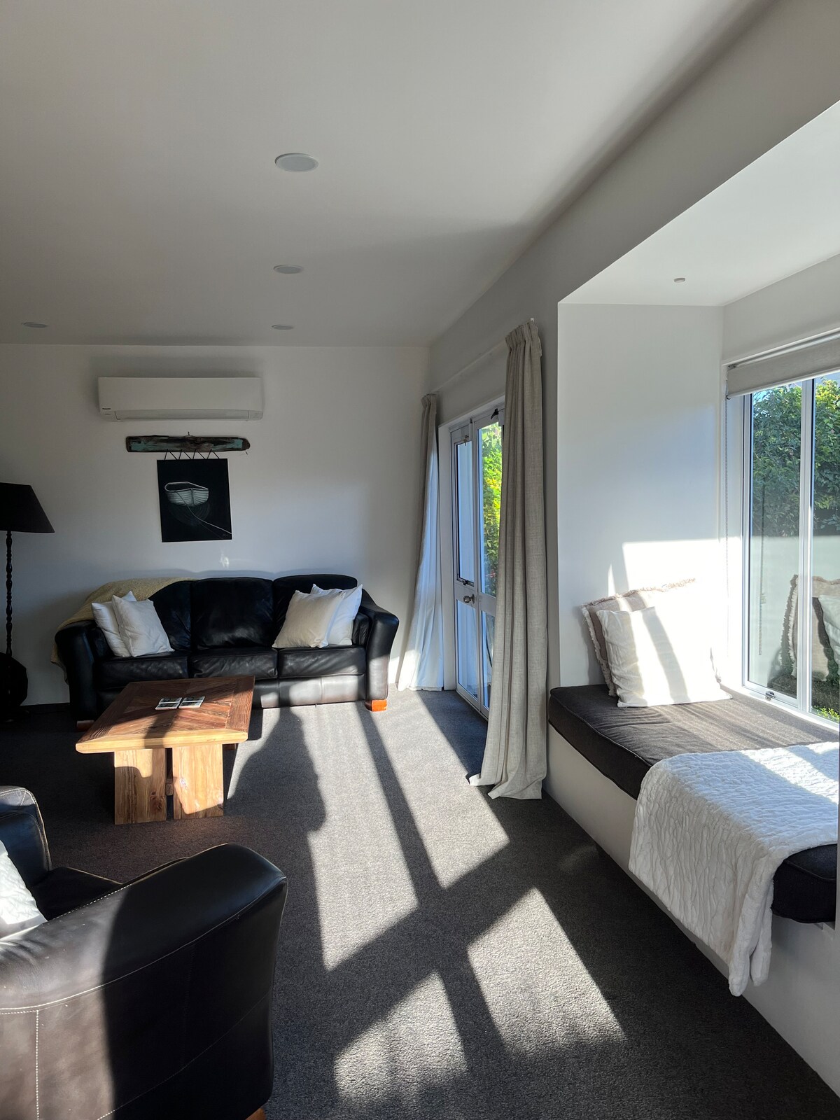 Perfect beach location! Part of a high standard, modern house on Browns Bay beachfront. 3-4 min flat walk to bus, shops and restaurants. Two large bedrooms with a large bathroom, allowing you exclusive use of this big area downstairs, including the shower, bath and vanity, dining/lounge/kitchenette. Underfloor heating in winter. Large outdoor deck with outdoor furniture, looks into garden with close beach and Rangitoto views. Nespresso machine. Off street parking. $10 per EV charge overnight.