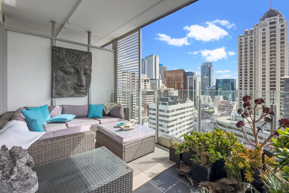 Central, stylish, pvte roof tce, gym, pool & spa