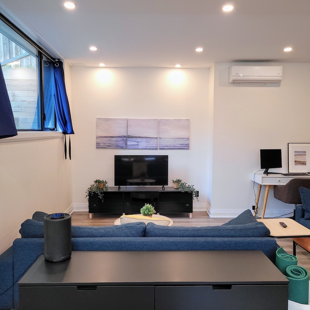 Welcome to your spacious and open-concept two-bedroom walk-out basement apartment located steps away from Downtown Kitchener (DTK), walking trails, Victoria Park, and Communitech Hub. There is a private entrance through the back with keyless entry. The spacious master bedroom is equipped with a king bed and a workstation for those wanting to get some work done. The cozy living space has plenty of seating and offers a 55-inch smart TV for all your streaming needs.