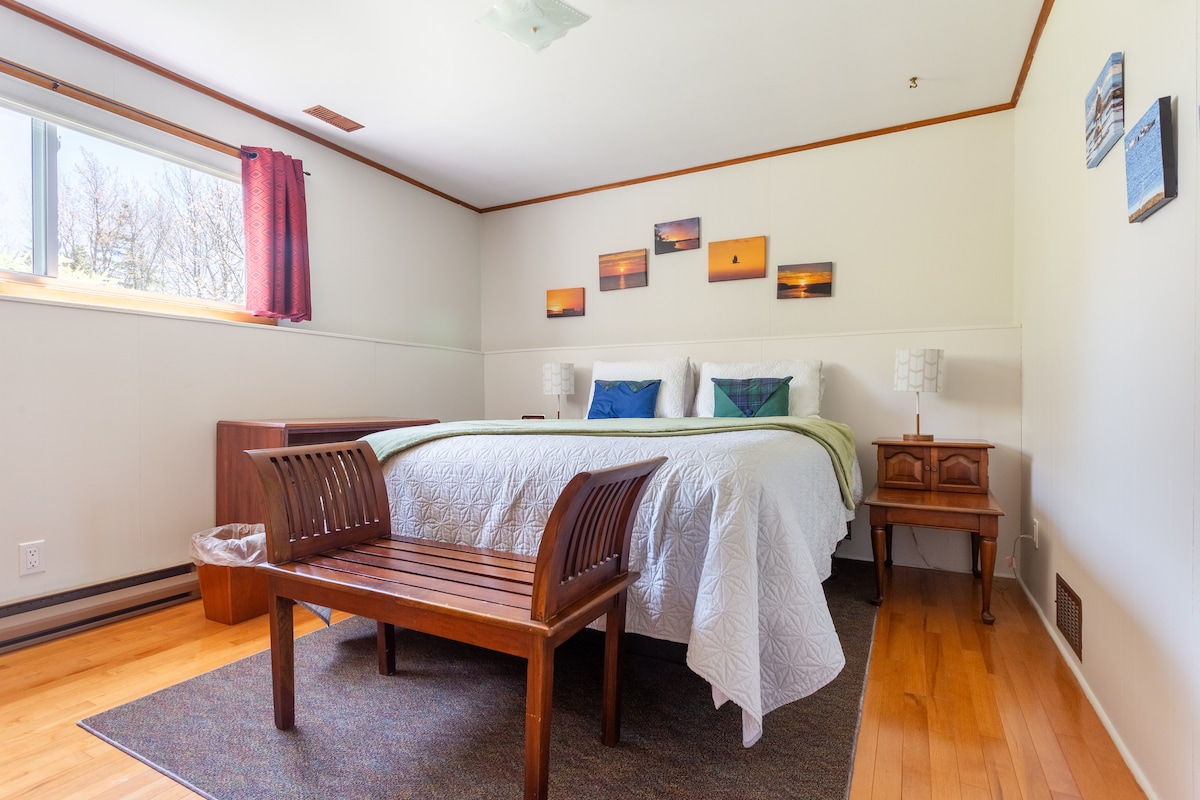 The White Crow guest suite- in lower level of our home. Lots of natural light throughout space. Enjoy quiet sleep in queen bed with black out blinds. Private bathroom. Minutes from hwy 104. Own driveway, private entry. 5 indoor steps to self contained suite. Large private backyard. Full kitchen (4 burner cooktop; 3 in 1 -microwave/toaster oven/air fryer; magic pot; pots & pans etc). Shared access to laundry & campfire. Cot with mattress or playpen- on request. *Pet friendly - $25/stay
