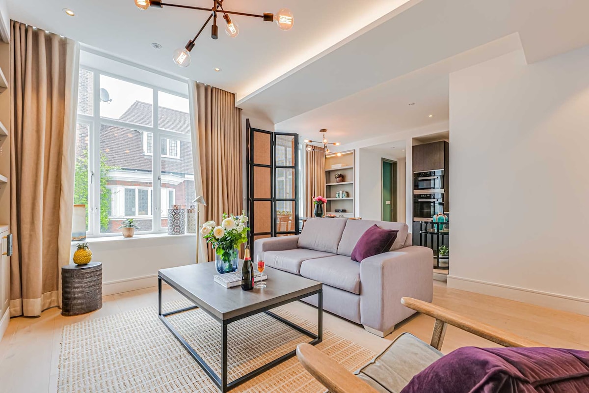 平均评分 4.98 分(满分 5 分),共 40 条评价时尚2卧2卫宽敞公寓,位于南肯辛顿
