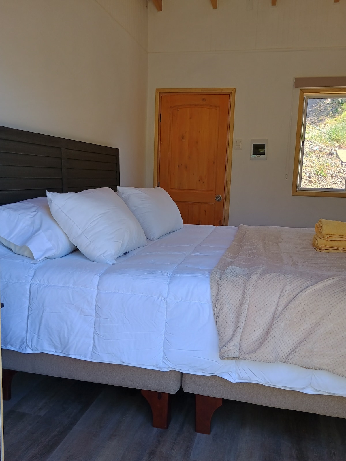Acogedor estudio equipado para dos personas ubicado aproximadamente a un kilómetro de Vicuña. Dormirás en una espléndida cama king que te asegurará un buen dormir, aire acondicionado y amplia terraza. Sólo tenemos dos estudios a tu disposición. Equipada con cocina y baño propios. Tinaja con agua caliente con pago adicional de $15.000 por cabaña ( avisar con 5 horas previas para preparar) Práctica de yoga personalizado y trekking con pago adicional por este hermoso y encantador Valle de Elqui.