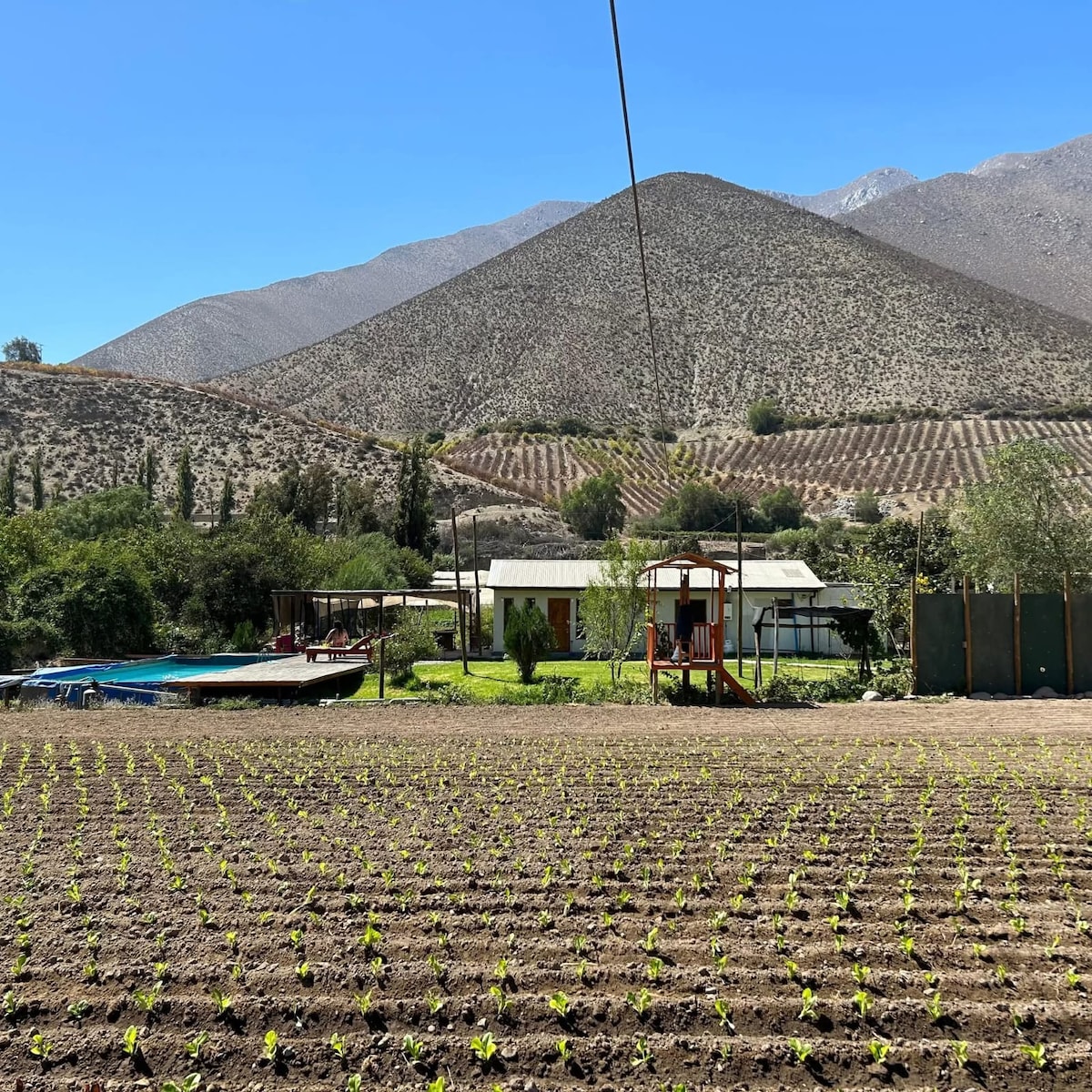 Relájate con toda la familia en el campo, en una casa con energía 100% solar. Nuestra casa está ubicada en el Valle de Elqui, rodeada de cerros y con cielos despejados, perfectos para ver las estrellas. Esta casa fue construida con mucho amor pensada en nuestros hijos, el objetivo es que puedan relajarse mientras ellos se divierten. Pueden salir a recorrer el pueblo, una divertida caminata al río, subir algún tramo de los cerros cercanos o simplemente disfrutar de la paz y el espacio disponible