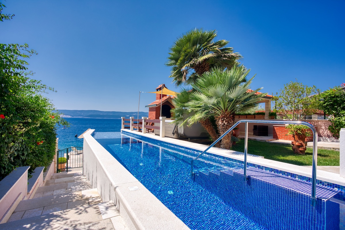 Villa Lady is a beautiful waterfront villa occupying a spectacular, central position in a small, picturesque bay.Located directly on the beach, by the crystal clean Adriatic, and surrounded by magnificent gardens with lemon trees and gorgeous boungavilleas the villa offers an unforgettable holiday experience. A brand new pool and jacuzzi directly by the beach will help you completely relax both your mind and body.