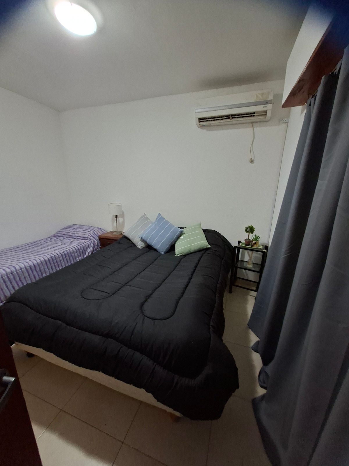 Barrio muy tranquilo residencial exclusivo, con seguridad permanente. A 3 cuadras del río y 10 cuadras del centro. Yo vivo en la casa abajo cualquier consulta estoy. El depto esta equipado para cuatro personas (utensillos) con pava eléctrica y microondas. Opcional cochera.