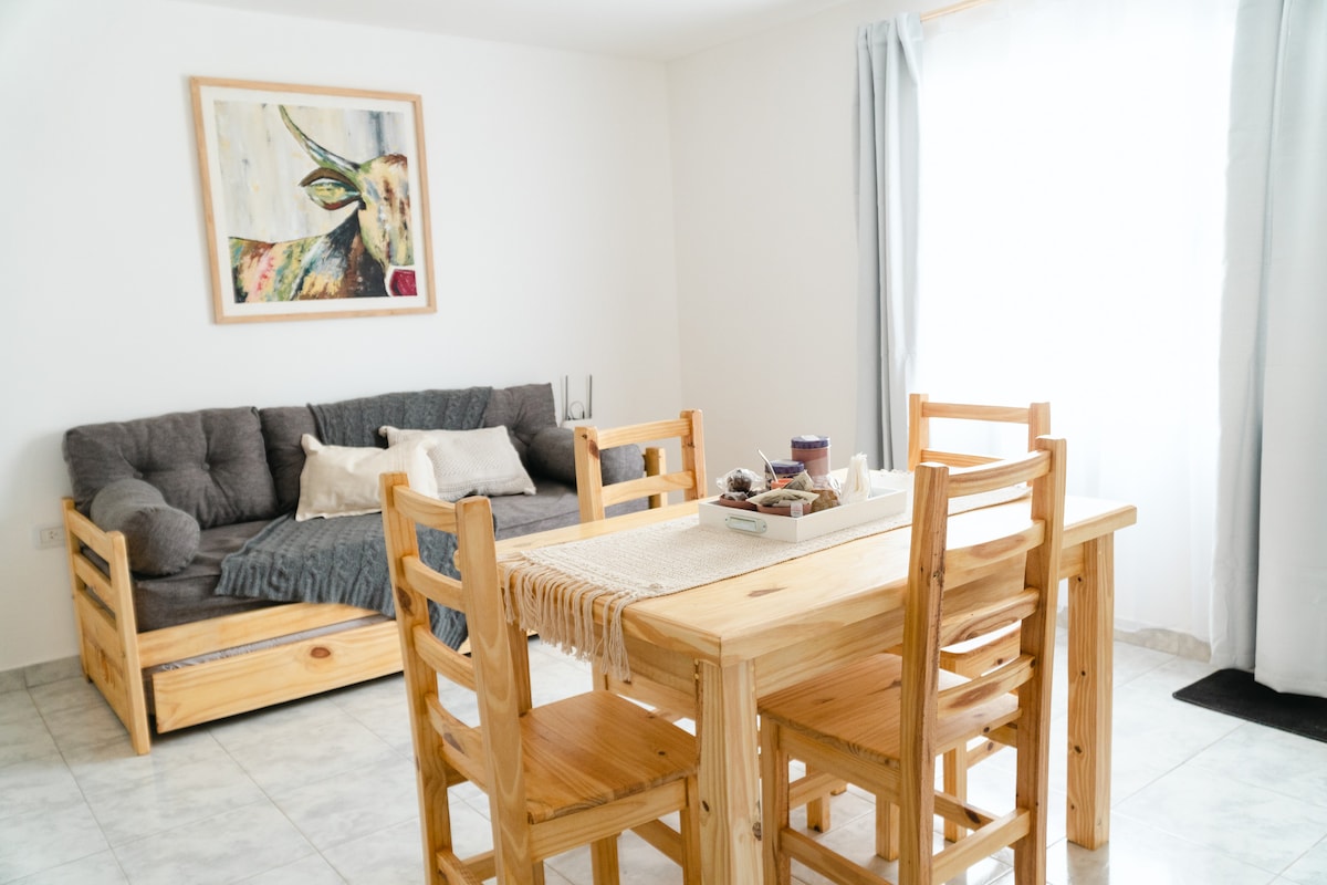 Amplio living-comedor con TV con todos los servicios de streaming. Cocina totalmente equipada con vajilla, cafetera, tostadora y pava eléctrica. Cómodo dormitorio con cama Queen Size y generoso espacio de guardado. Cama adicional para 1 adulto en el living con posibilidad de extensión de cama marinera para un niño(colchon 1.70). Calefacción a gas y AA. Excelente ubicación: a 300 mts Plaza San Martín (casa de gobierno), a 500 mts calle Bs As (centro comercial) y a 800 mts de costa del río.