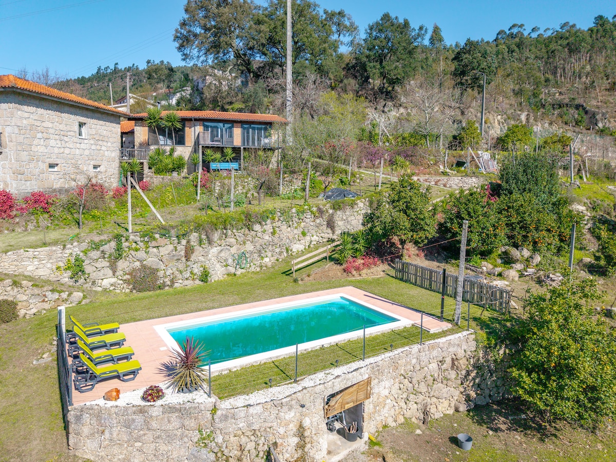 Refúgio Natural com Vista para a Albufeira do Gerês – Casa com Piscina Privada e 5 Quartos, 3 na casa principal e 2 numa casa anexa a 10 metros. Esta encantadora casa de férias oferece-lhe o cenário perfeito para relaxar e reconectar com a tranquilidade da serra, num espaço exclusivo com 10.000m² de área exterior. No exterior, desfrute de uma piscina privada. Um ribeiro sereno atravessa a propriedade, proporcionando o relaxante som da água corrente como banda sonora.