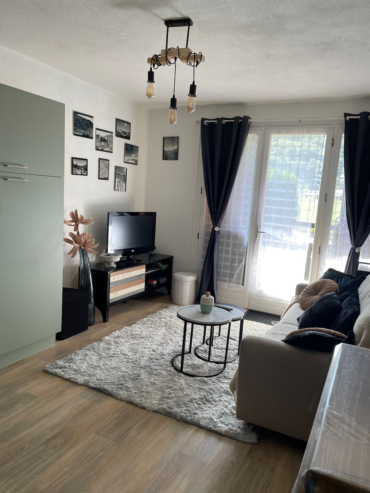 LOCATION SEMAINE OU WE . Charmant T2 refait à neuf situé au premier étage d'une résidence au coeur du village avec commerce à proximité. Accès station et thermes à pied. Plein Sud avec balcon. Très lumineux . Une chambre avec couchage modulable. Un convertible 2 places très confortable dans le salon . Cuisine équipée, lave linge ,lave vaisselle, four/micro ondes , plaque vitro, grille pain, raclette, TV. Salle d'eau, sèche serviette, sèche cheveux . Parking prive .