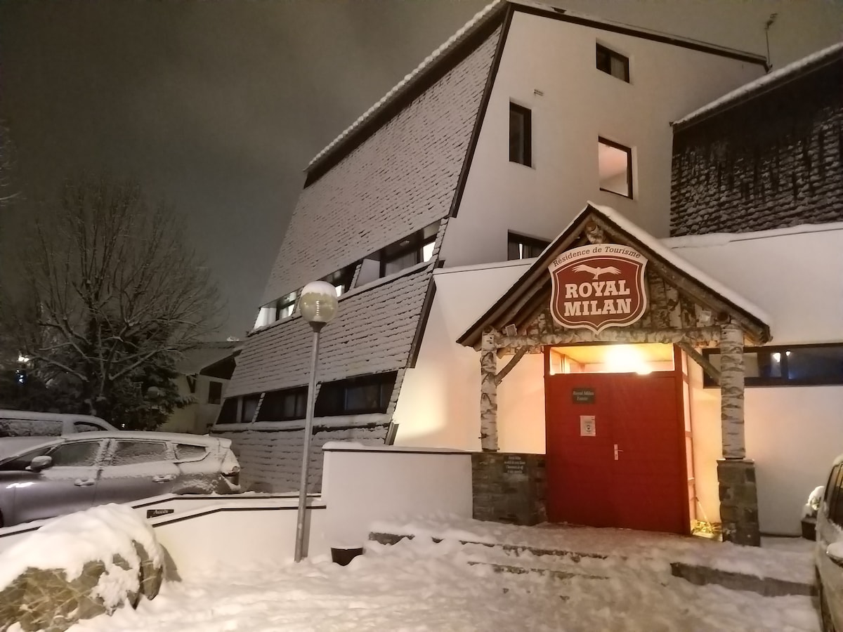 Charmant studio avec terrasse de 9m2 vue montagne, situé au 1er étage de la résidence ROYAL MILAN (classée 3 étoiles). Résidence refaite à neuf en 2017, idéalement située dans le village (quartier thermal/200m des télécabines). Nombreux espaces communs : salon douillet, cheminée, billard, baby foot, coin jeux, petite salle de fitness, sauna ouvert aux horaires de la réception, piscine extérieure (16 juin/17 septembre). En sous-sol : laverie payante avec sèche linge, casier à skis, local vélos.