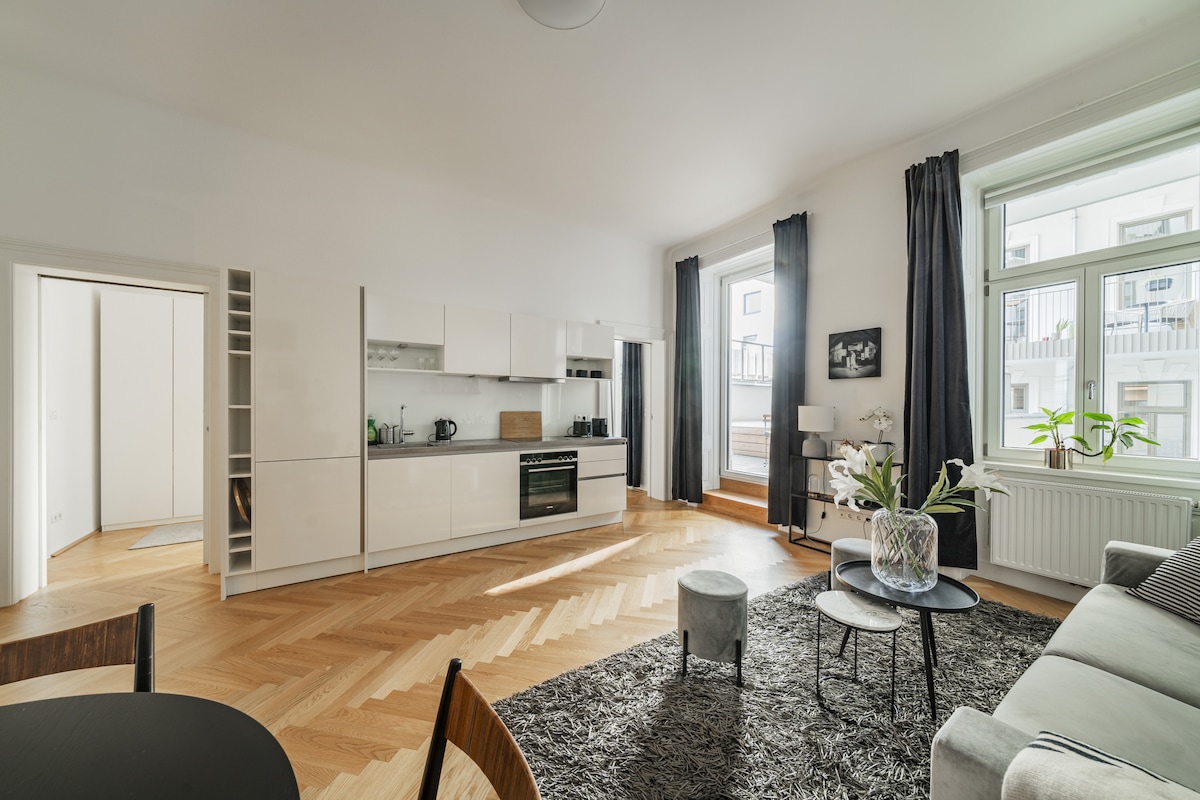 Located in Viennas Biedermeier district Spittelberg with its romantic lanes featuring rustic beer bistros and trendy bars, fancy restaurants and student hang-outs this modern apartment is the ideal base for exploring the city. Both, the Historic City Centre and Mariahilferstrasse - the cities longest shopping street can easily reached by foot. The Metro station just around the corner will connect you to the entire city and its surroundings. Enjoy Viennas best location according to us!