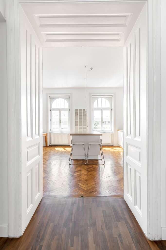 This recently renovated apartment offers three master bedrooms and two bathrooms. In this amazing Jugendstil apartment you will find designer furniture, a high quality kitchen and lots of art. The Apartment is huge and offers a lot of space for a group of friends, families or people traveling for business. The apartment is on the first floor (elevator available) in a fantastic Jugenstil house in the 4th district right next to the Naschmarkt.