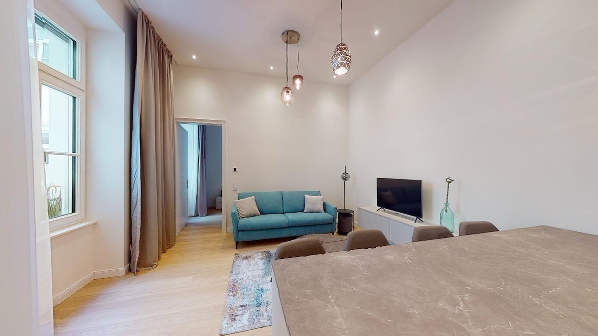 Newly renovated stylish appartement located in French District of Vienna, very central, 2 mins walk away from public transport & 7 mins ride to the city center. The 2 room flat is cosy & peaceful, suitable for tourists or business travellers. It has a separate bedroom with double bed, large built-in closet & living room with a comfy sofa bed. Kitchen is well equipped with Siemens machines including kettle, Nespresso & other machines. The luxurious bathroom is very spacious with a designer bath.