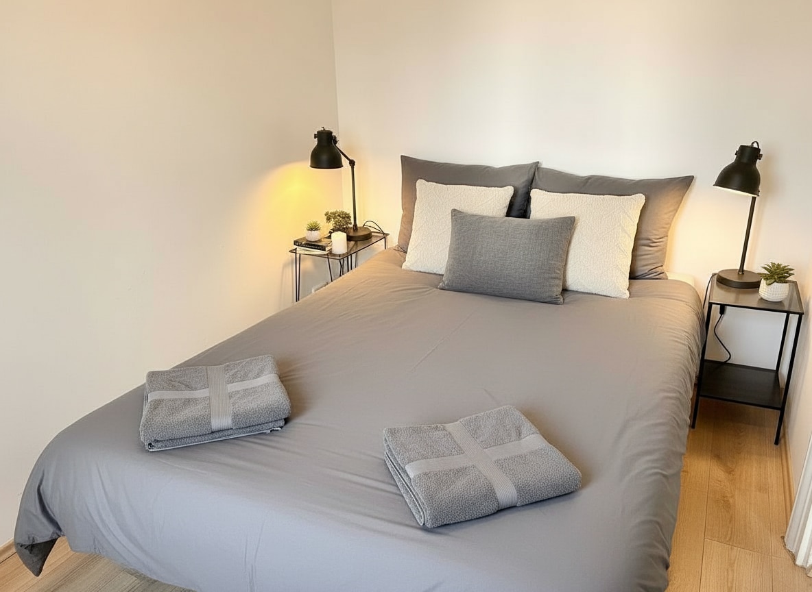 Modernes Loft in Bestern Lage beim Westbahnhof & Einkaufszetrum mit Industrial-Chic-Stil. Ausstattung: Doppelbett im Schlafzimmer (flexibel durch Vorhang vom Wohnzimmer abtrennbar), Einzelbett im Wohnzimmer, begehbarer Kleiderschrank, Projektor für Filmabende. Alle Fenster verdunkelbar – perfekt für Kino-Nächte und erholsamen Schlaf. Vollausgestattete Küche mit Herd, Kühlschrank und Kaffeemaschine. Großes Badezimmer mit bodentiefer Dusche und Waschmaschine. Großzügiges Vorzimmer zum Ankleiden.