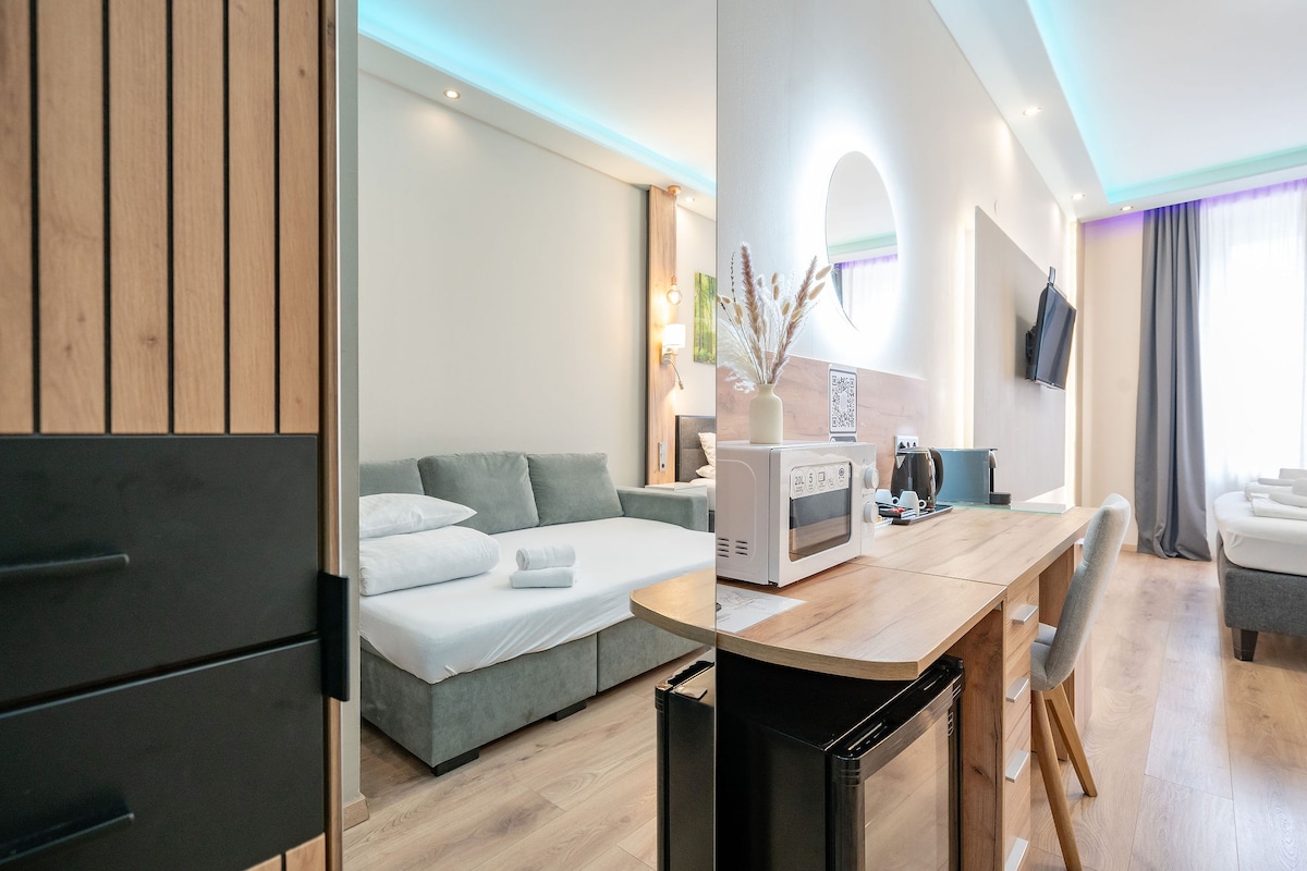 Our place is located in Vienna and with Schönbrunn Palace reachable within a 15-minute walk. We provide express check-in and check-out, allergy-free rooms, a garden, free WiFi throughout the property and a terrace. Beyond providing deep rest, we want you to savor every moment of your visit to Vienna. That’s why we’ve curated experiences designed to enhance your journey Together with the room, we are offering all our guests 1 hour of free access to the pool and sauna.