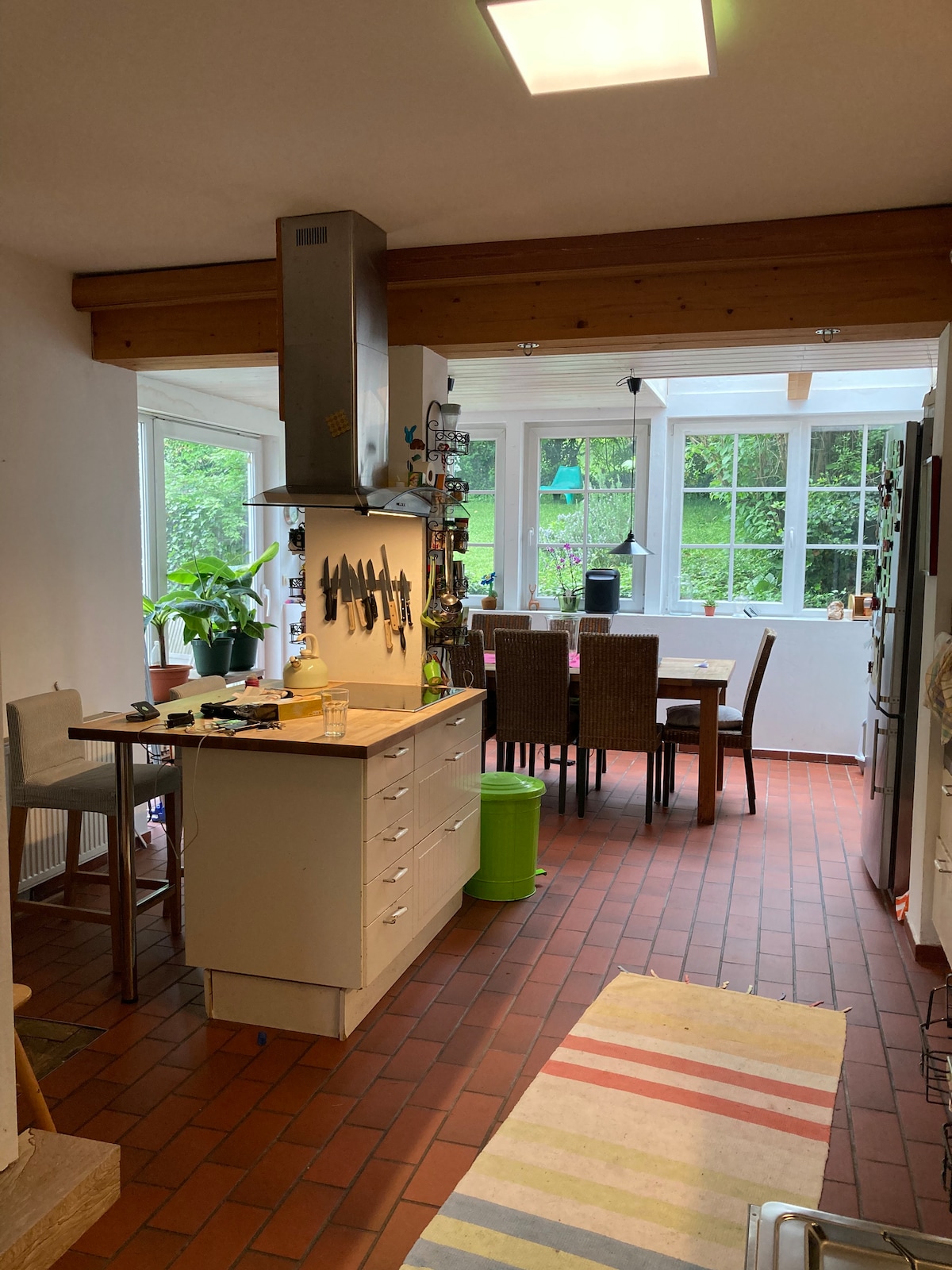 In diesem großen Haus (400m²) in einem ruhigen Bezirk in Wien (15 Minuten ins Zentrum) können Sie sich herrlich entspannen. In der Nähe gibt es viele gemütliche Restaurants und Heurigen. Am Grundstück können bis zu 5 Autos parken (+Garage), im Garten können Sie die Ruhe genießen. Das Haus ist in den 80er Jahren erbaut und bietet den charmanten Retro-Flair dieser Zeit. Im Kellerstüberl befindet sich ein (nicht beheizter) Pool und eine Sauna samt Ausgang in den Garten.