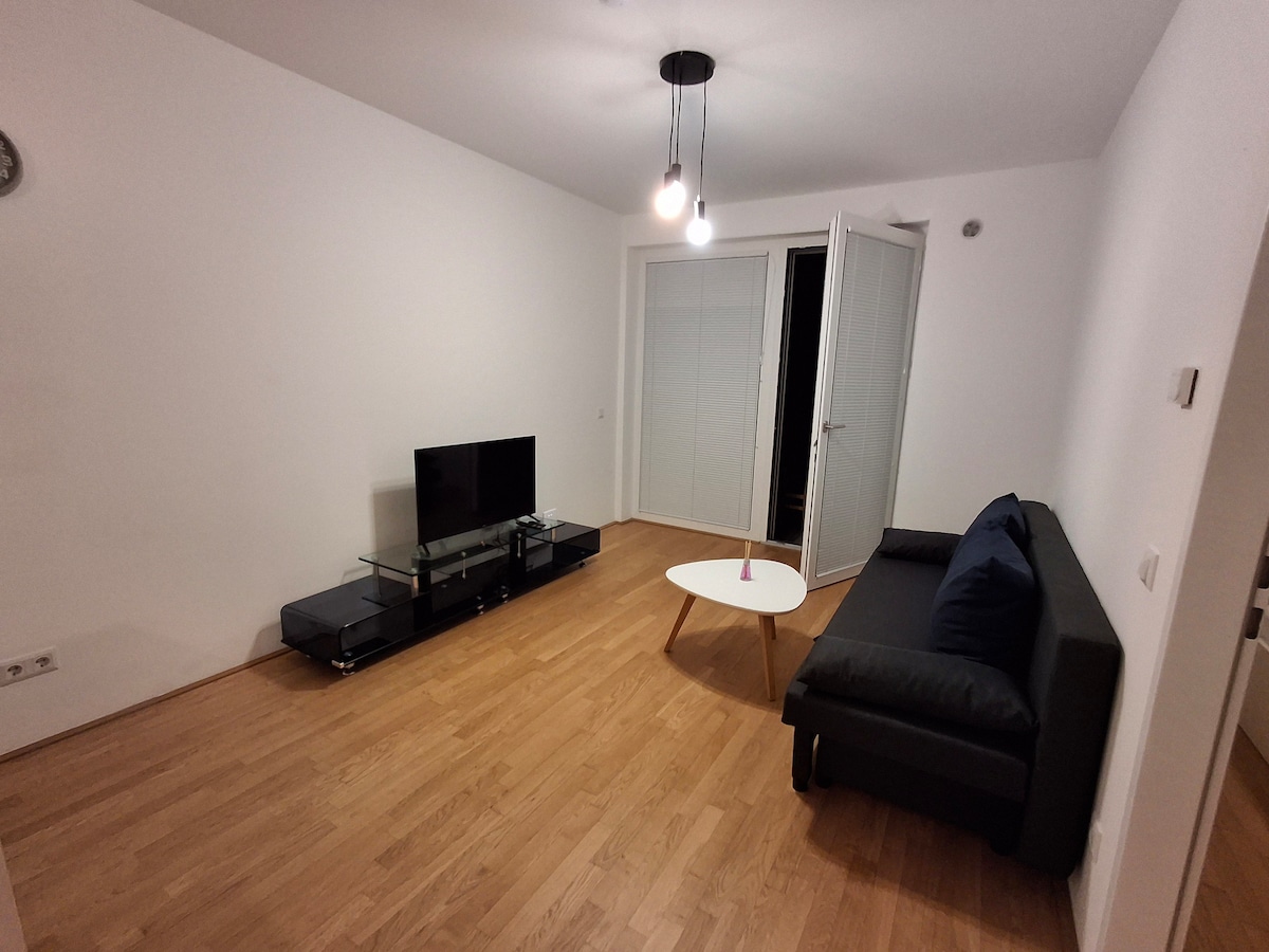 This brand-new 50m² apartment in one of Vienna's tallest residential buildings is centrally located and perfect for your stay. The highlight is the rooftop pool on the 31st floor, offering a breathtaking view over the city. Fully equipped with everything you need: a coffee machine, a kitchen with all appliances, a large smart TV with cable channels, high-speed Wi-Fi, a terrace, a rooftop pool, and more. You can reach Vienna's city center in just 7 minutes. Ideal location for a city trip.