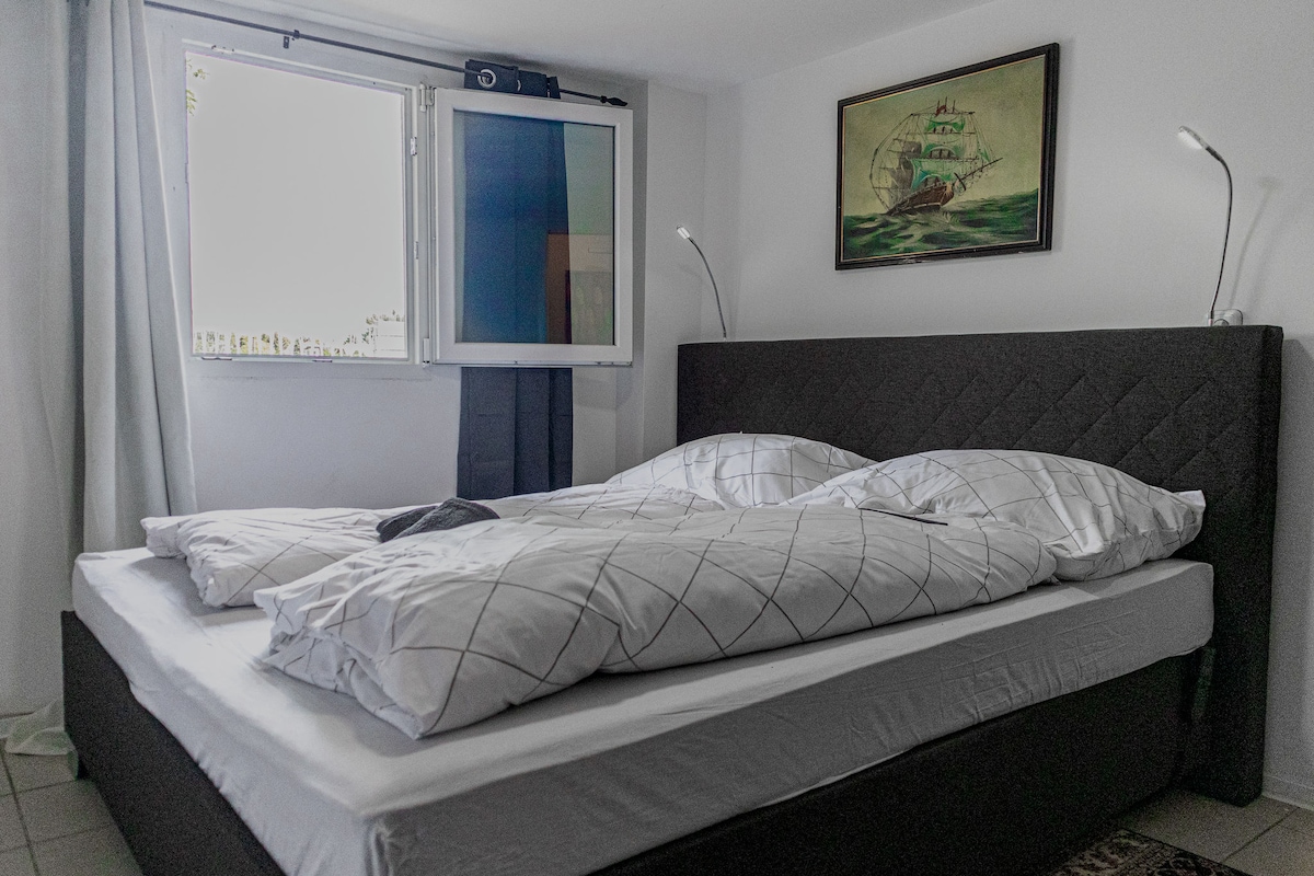 This private room on the ground floor of a villa is suitable for 2 guests and offers access to the shared garden along with all common areas. We offer: ✔ Self Check-in ✔ High speed Wi-Fi ✔ Cozy pillows and beds ✔ A shared kitchen ✔ Shared bathroom ✔ Laundry facilities ✔ Quality toiletries ✔ Affordable parking ✔ €2 per booking for charity