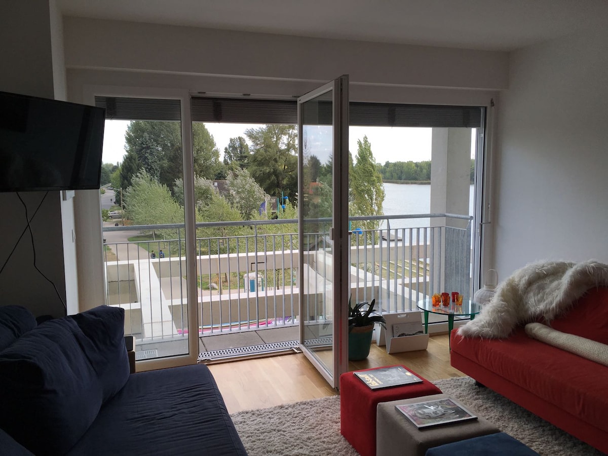 Apartment mit Wasserblick/Grünblick. Gehwege direkt vom Haus ins Grüne entlang der Alten Donau. Self Checkin, Garagenplatz direkt im Haus kann für €15.- pro Tag angemietet werden, Aufzug von Garage macht Ankommen /Abreisen einfach. U-Bahn Station Alte Donau (U1)gleich bei Brücke, 9 Minuten in die Innenstadt, Schwimmgelegenheit direkt vorm Haus. TV alle Internat.Sender, Internet WLAN, Wohn-Essraum mit Wasserblick, Freizeitmöglichkeiten, RadfahrenJoggen, Supermarkt gegenüber, sehr gute Restaurants