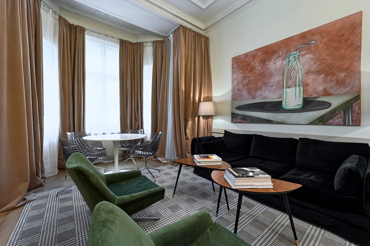 This comfortable apartment with terrace offers 45 m² of space for up to 2 people. The bedroom with double bed (180x200), the living room with smart TV and dining table and the modern bathroom with shower make this stay a perfect way to experience Vienna. The room also offers a fully equipped kitchen with sustainable coffee and tea facilities and a washing machine. Here you’ll have everything you need for maximum comfort and minimal stress.