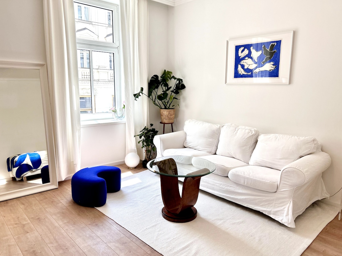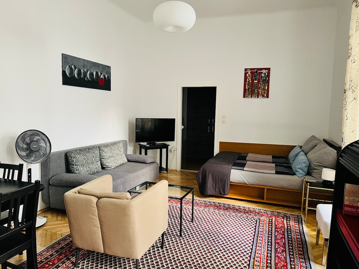 Discover city living at its finest in our newly renovated, highly central 40m² apartment. Nestled on the 2nd floor of a historic building, this exclusive space boasts a spacious living room, comfy bedroom, bathroom with toilet, and a well-equipped kitchen. Additional amenities include a sofa bed, TV, WLAN, washing machine, and a full kitchen setup. All your daily needs, shops, cafés and restaurants just around the corner. Immerse in art, culture, shopping and sights steps away.