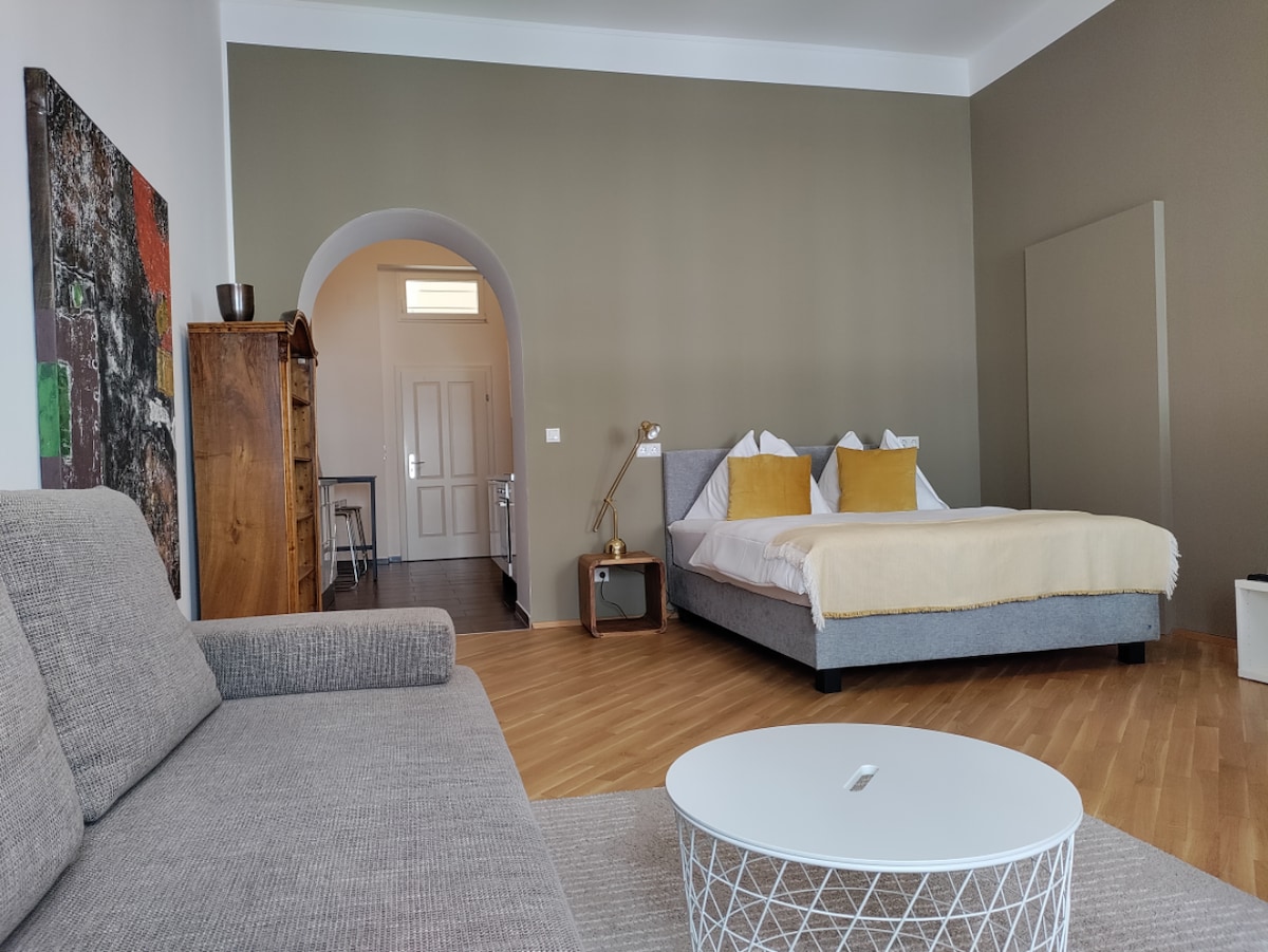 Einzigartige 120m2 Etagenwohnung in historischem Gebäude im Herzen Wiens. Mittendrin und doch abgekoppelt. Verfliestes Schlafzimmer mit Zugang zur sonnigen Dachterrasse. Durch einen 12m langen Gang gelangt man zum 80m2 großen Loftbereich inkl. Vintage Kitchenette. Bei dieser besonderen Unterkunft sind alle wichtigen Anlaufpunkte ganz in der Nähe – so wird die Planung deines Aufenthalts ganz einfach. Have no fear of perfection - you'll never reach it.