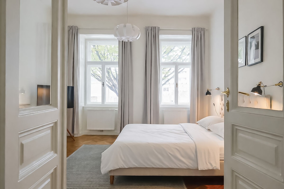 Enjoy luxurious comfort in this elegant 100m² boutique apartment – just 12 min to Stephansplatz. Located in a vibrant area with excellent cafés and supermarkets Perfect public transport: metro U3 and airport lines S7/CAT nearby. The apartment offers: • 4 stylish bedrooms • flexible beds: 4 king-size or 8 singles with orthopedic mattresses – king beds connected without gaps - perfect comfort. • 3 bathrooms (2 en suite) • fully equipped kitchen with dishwasher/washing machine • sunny terrace