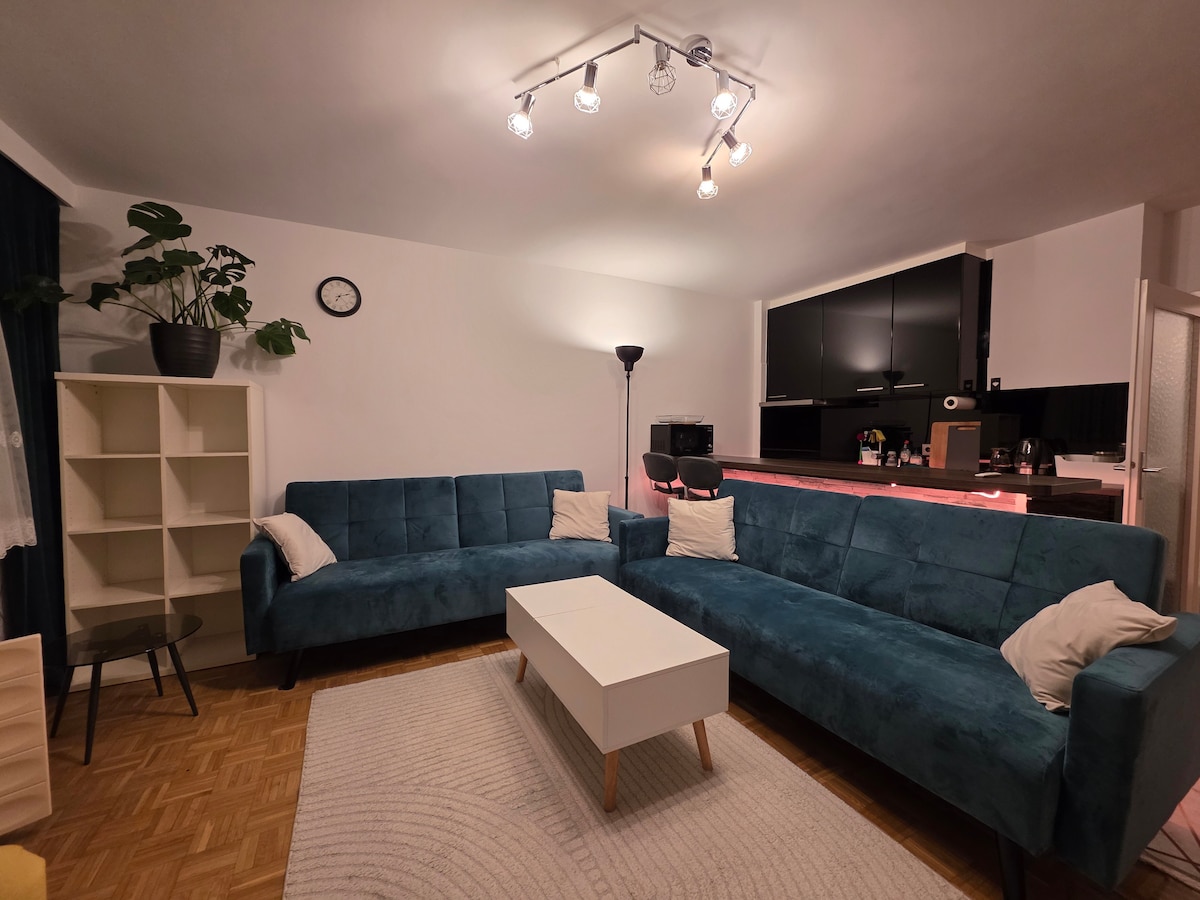 Very bright spacious apartment, located on the sunny side of the building and also is in walking distance to the Danube. Very calm, family place:) There are 2 separate bedrooms and a living room with sofa with bed-function. Apartment is 5 min away from city center (Stephansplatz) using public transport. Also there is a direct train from airport right in houses neighborhood. All grocery stores are in 1 min walkway. (Billa, Spar)