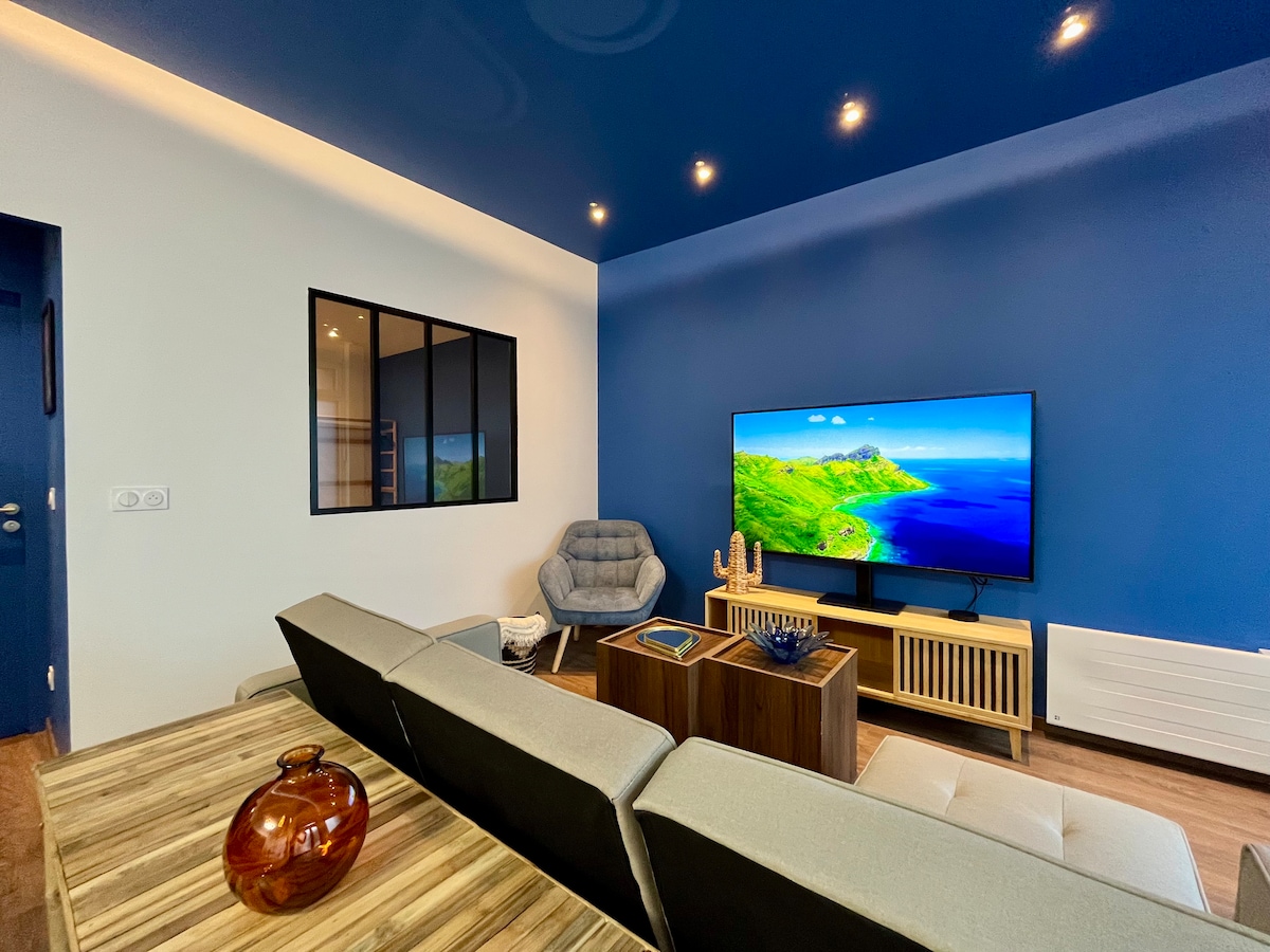 La loge est un appartement penthouse, rooftop aux prestations haut de gamme. Vous pourrez profiter de 60m2 pour 3 personnes maximum (le troisième couchage est un appoint, canapé lit 1 personne de chez Maison du Monde). La loge est la parfaite alliance du confort et de la tradition: charpente apparente, climatisation, fibre optique et bouquet de chaînes TV, cuisine entièrement équipée, décoration choisie, exposition d’œuvres d’art, terrasse, balcon, parking privé.