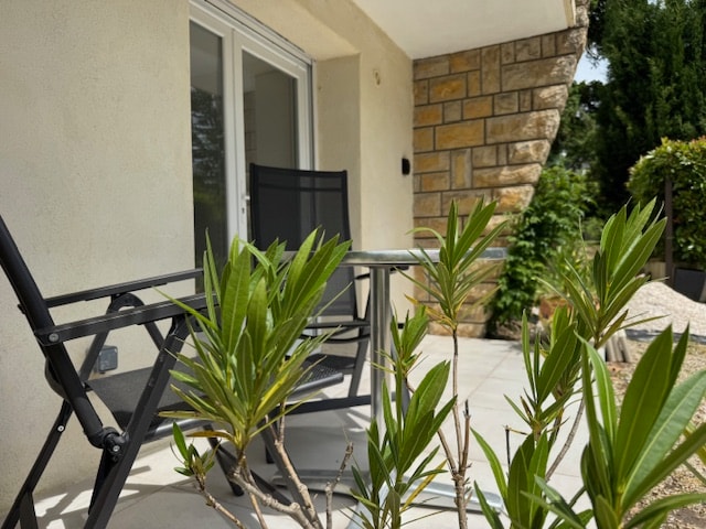 Studio 24 m2 en RDJ d'une villa avec entrée indépendante et place de parking gratuite dans la cours fermée de la villa. Petite cuisine équipée . Terrasse privative Literie 140x190 et canapé convertible Le logement se situe à 1 km du centre ville (4 min en voiture, 10 à 15 min à pieds), des commerces, bars, restaurants et du théâtre antique et autres sites à visiter. Appartement bénéficiant d’une fraîcheur agréable l’été. Arrêt du bus de ville à 100m