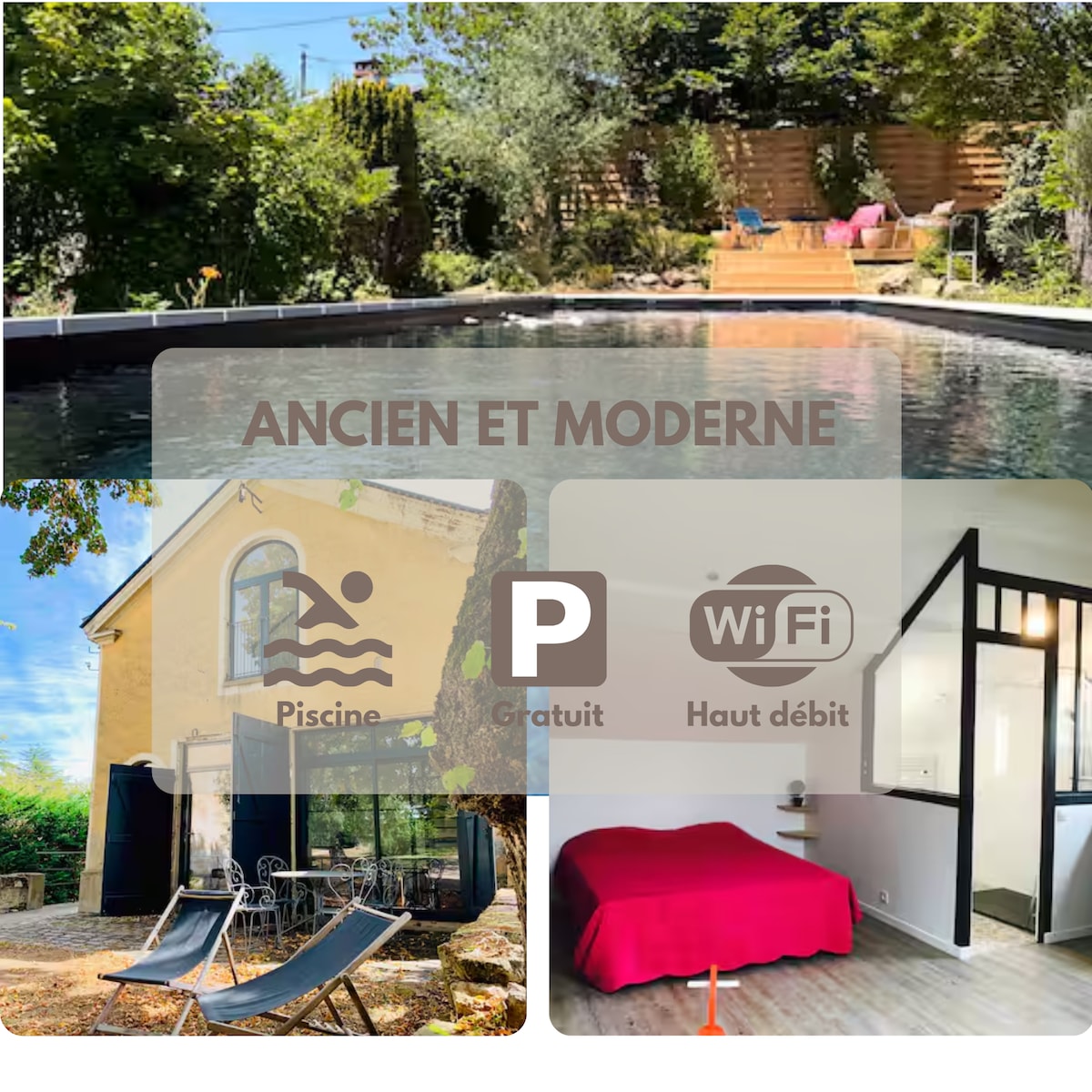 Logement tout confort à 10 min de Limoges, à 5 min de l'aéroport de Limoges et 10 min d'Oradour sur glane. au calme et à la campagne. A 400 mètres du bourg de Verneuil sur vienne, avec tous les commerces. Studio de 35 m2 indépendant dans une partie de ma résidence principale avec entrée indépendante. WIFI Cuisine toute équipée. Accès à une terrasse abritée et au jardin avec vue sur la campagne. Piscine à partager avec les propriétaires et accessible de juin à septembre. Lit parapluie.