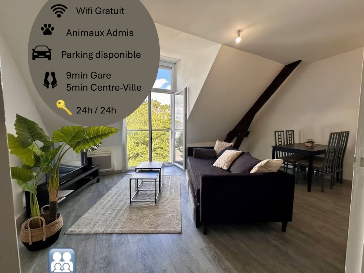 A 2 pas de la place Notre-Dame et de son marché, ce studio lumineux et très calme, rénové et aménagé dans un style industriel, peut accueillir 1 à 2 personnes. Cet appartement non fumeur en résidence sécurisée, offre une vue sur une charmante cour arborée. Sa cuisine équipée, sa salle de bain avec baignoire, son lit 140*190 avec un excellent matelas Sampur à mémoire de forme, son équipement internet, feront de votre séjour, à titre touristique ou professionnel, un moment confortable et serein.