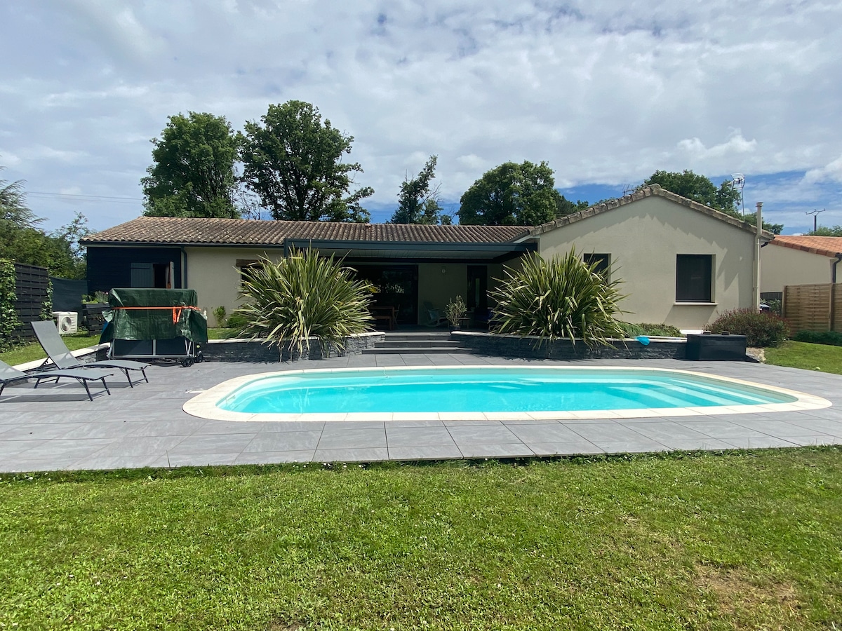 Profitez en famille ou entre amis, de ce fabuleux logement entièrement rénové qui offre de bons moments en perspective. Salle de réception pouvant accueillir une cinquantaine de personnes : - Climatisée - Cuisine avec un piano four à gaz, 2 frigos et un lave-vaisselle - Vaisselle fournie Idéal pour réunions de famille, anniversaires... 15 couchages Piscine avec dôme pool house Terrain de pétanque Balançoire Gite classé 3 étoiles