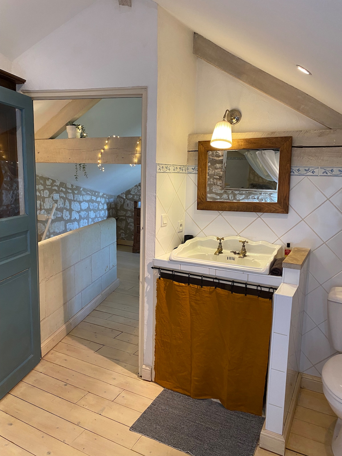 Les Vignes - 2 bedroom gite with a small vine covered patio area with garden furniture & a charcoal BBQ. You enter into the open plan kitchen, lounge, diner with exposed stone walls and log burner. On the first floor are a double bedroom and a twin bedroom as well as a bathroom with a shower. Full of rustic character and recently refreshed and furnished with luxury in mind. Access to shared 10x5m pool and communal games/leisure facilities.