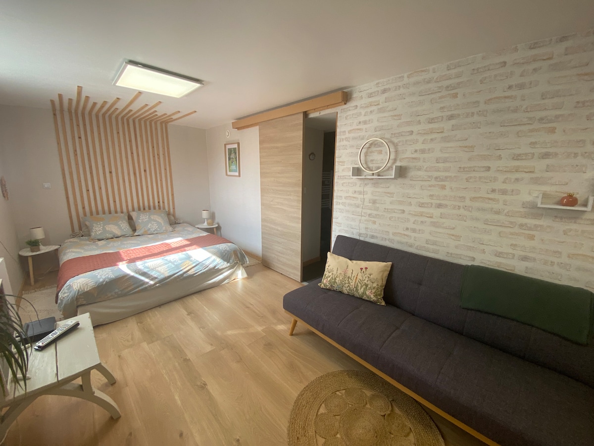 Vous souhaitez découvrir la Touraine et ses châteaux ou profiter d'un temps de repos au calme à proximité de la cité historique de Richelieu ? Réservez ce grand studio lumineux pour 2 adultes, dans l'ancienne grange au fond de notre jardin. Un espace sous rampants en mezzanine (accès par échelle sous votre responsabilité) peut permettre l'accueil de vos enfants. Vous avez l'usage d'une terrasse privative et une partie du jardin est réservée avec des jeux d'enfants sous votre responsabilité.