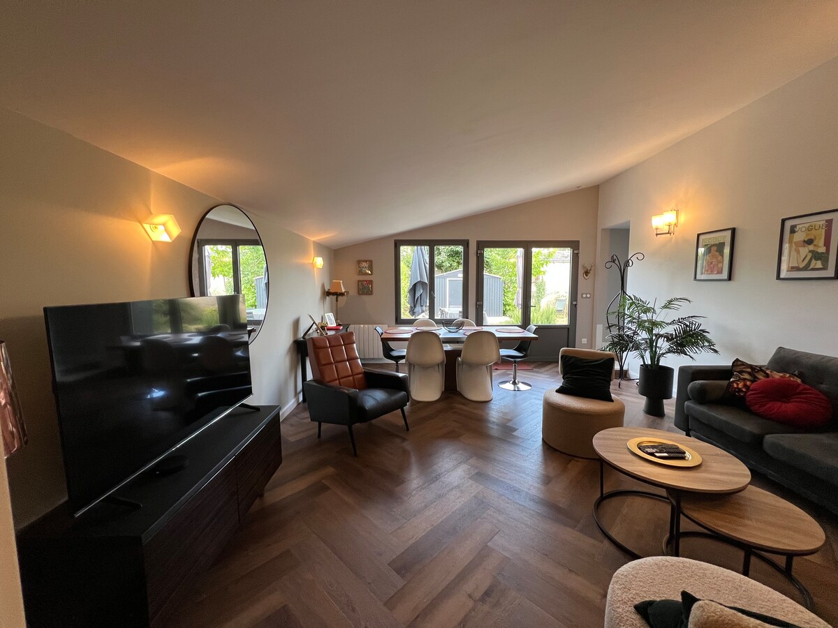 Maison de 38m2, entièrement rénovée et fonctionnelle, située dans un quartier calme. Pour votre confort, le logement est très bien équipé. Cuisine : nombreux ustensiles et appareils ménagers, vaisselle variée et ingrédients de base (café, thé et tisane, sucre, sel, poivre, huile, vinaigre) Salle de bain : produits de toilette, sèche cheveux. Jardinet fleuri : table, chaises, transat, plancha. Tout le linge de maison fourni. Stationnement gratuit dans la rue.