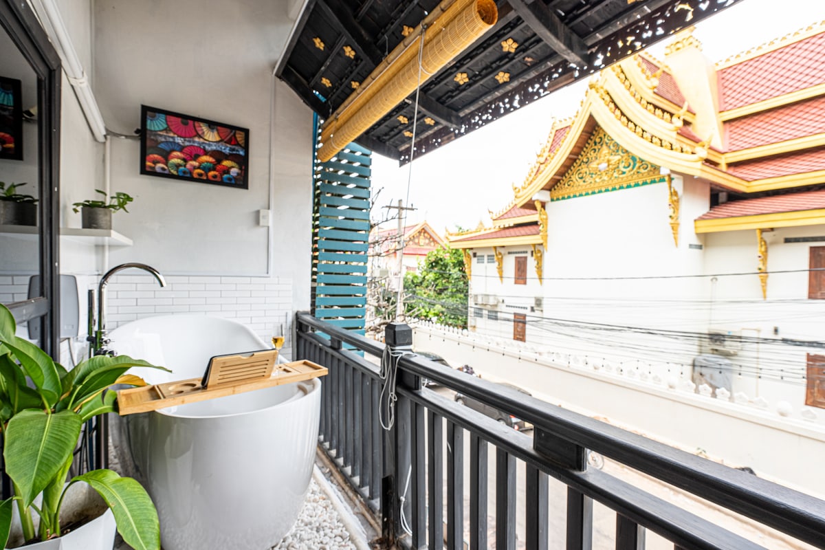 A modern one-bedroom apartment, 40m², located right in the heart of Vientiane. The room is airy, featuring a private balcony, a king bed (1.8m), air conditioning, TV, Wi-Fi, and a quiet workspace. You can comfortably cook with the kitchen, which comes fully equipped with basic cooking utensils and a refrigerator. Each apartment includes daily housekeeping service and the private bathroom. This is an ideal choice for business travelers, tourists, or long-term stays.