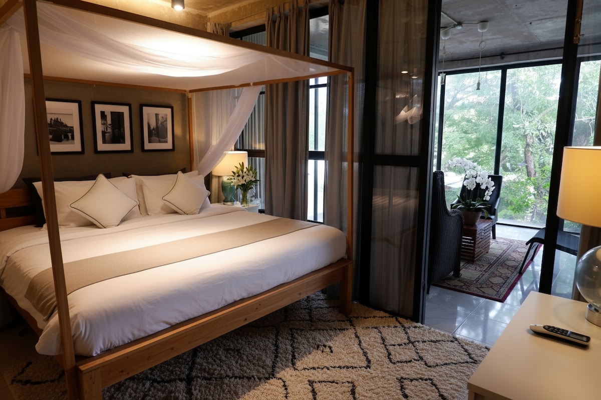 A modern one-bedroom apartment, 40m², located right in the heart of Vientiane. The room is airy, featuring a king bed (1.8m), air conditioning, TV, Wi-Fi, and a quiet workspace. You can comfortably cook with the kitchen, which comes fully equipped with basic cooking utensils and a refrigerator. Each apartment includes daily housekeeping service and the private bathroom. This is an ideal choice for business travelers, tourists, or long-term stays.