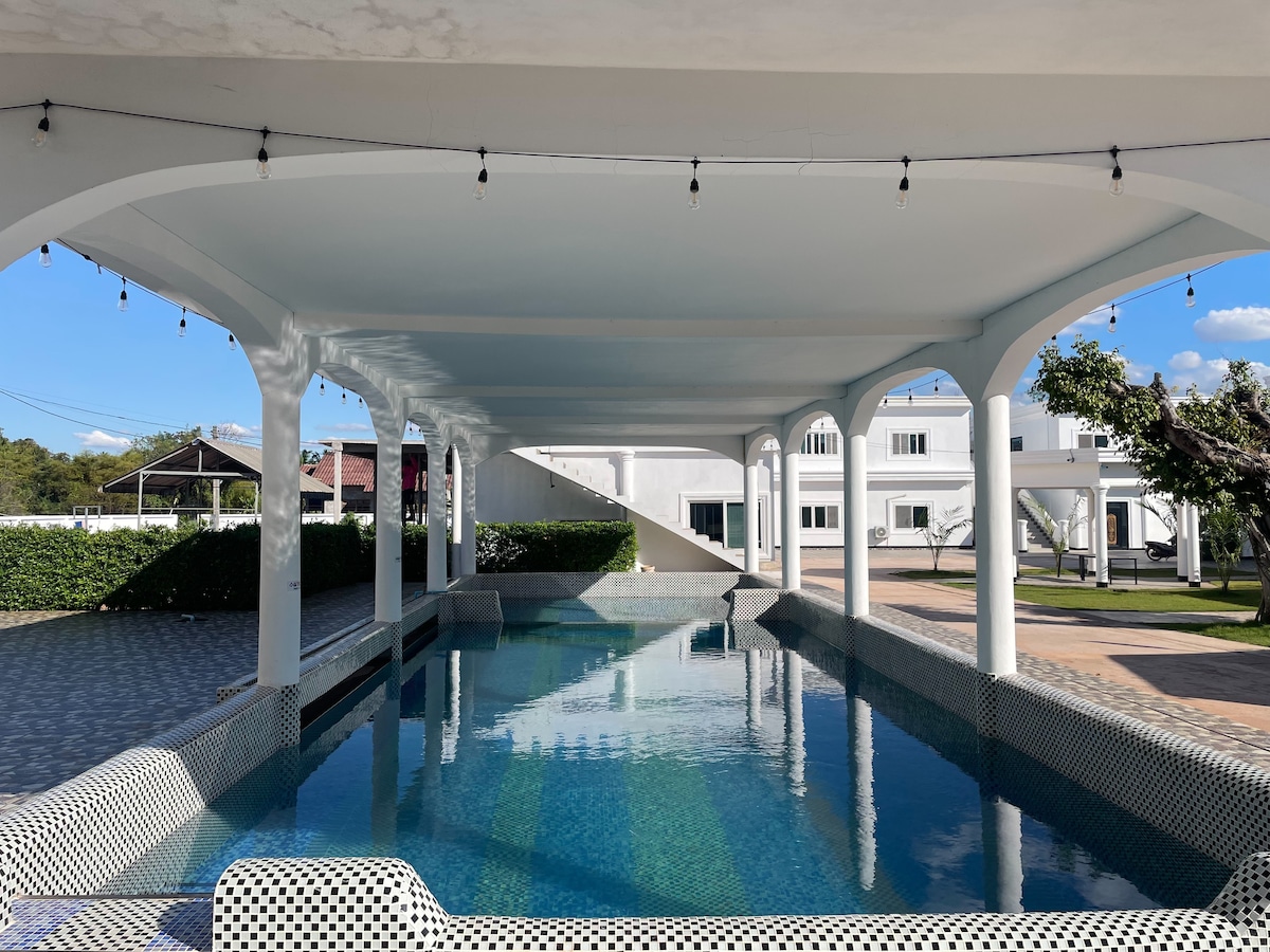 Nestled in a picturesque rural landscape, Dalasone Pool Villas offers a unique retreat combining rustic charm with modern comforts. The resort features a stunning swimming pool surrounded by lush greenery, perfect for a refreshing dip or a relaxing lounge. Elevated wooden houses add a touch of traditional elegance, while the backdrop of expansive fields and majestic mountains creates a serene and breathtaking environment.