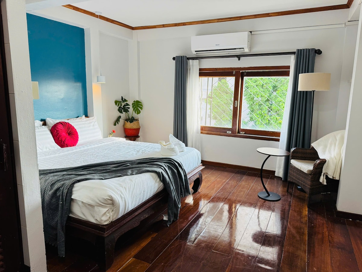Just opened: BIG COMFORT, SMALL PRICE! Nested on a calm side street, freshly renovated, BlueHome is your peaceful base in the heart of Vientiane. Every detail, from a comfy mattress and crisp linens to thoughtful amenities, is designed for real rest. Whether you’re heading from Pakse, Thakhek to Vang Vieng, Luang Prabang, Nong Khiaw or Thai Embassy, make BlueHome your easy, comfortable stop to relax, reset, and feel at home. Central: cafes, temples, and the Mekong are a short walk away.