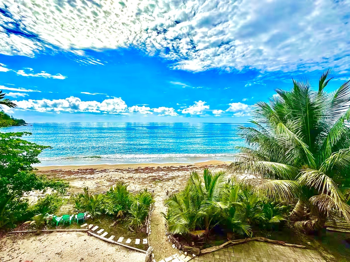 At The Waves is a beautiful beachfront rental villa complex located in Santa Maria Playa, next to the north shore garden district of Bravos de Boston and Isabel Segunda. We have 5 units in total. This unit is a 1 bedroom/1 bathroom, with a queen size bed and is fully equipped. It has, a refrigerator, stovetop, microwave, coffee maker, dishwasher, dishes, utensils, cookware, and more. There is an air conditioner in the bedroom, ceiling fans in all rooms. ASK ABOUT LONG TERM STAY DISCOUNTS.