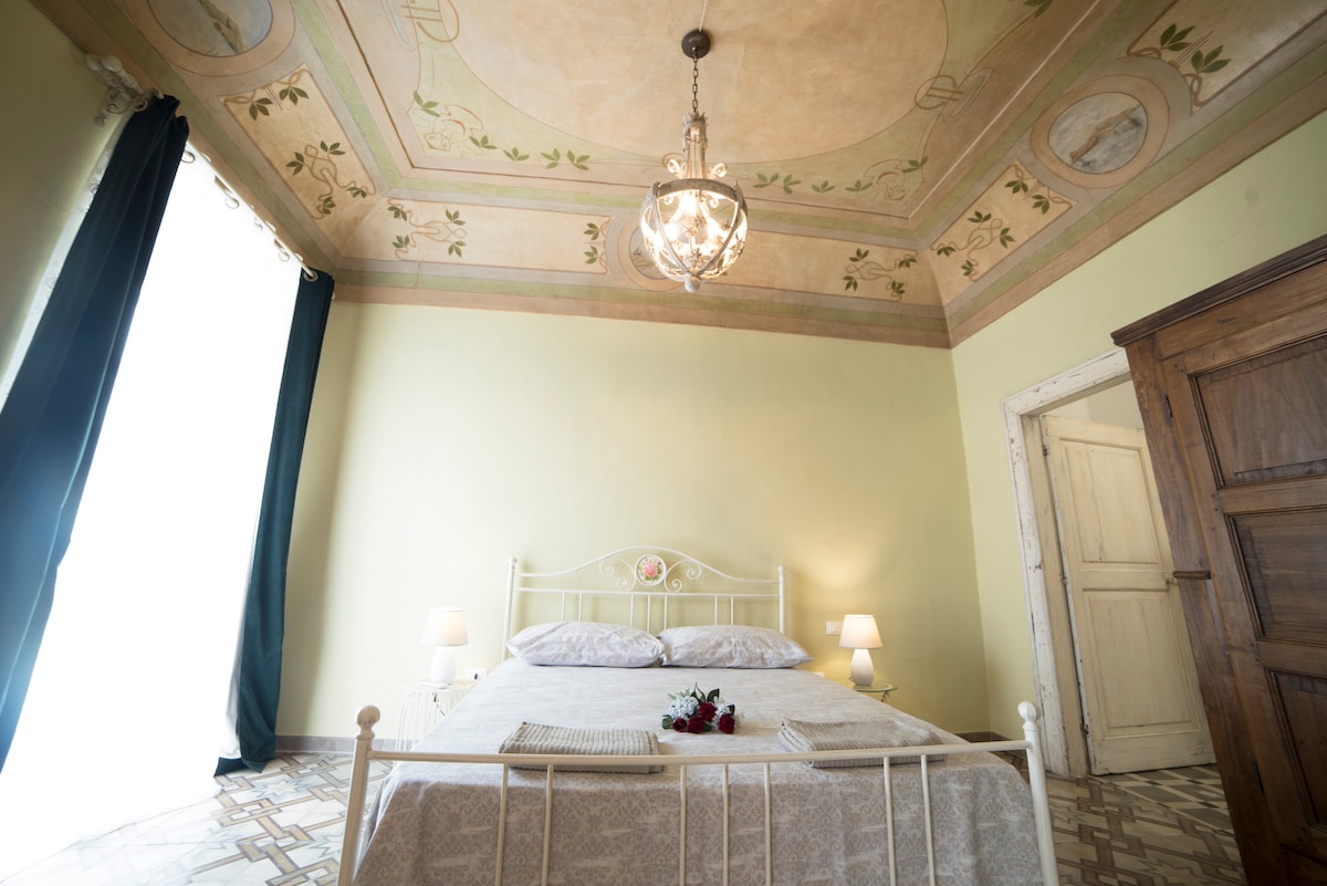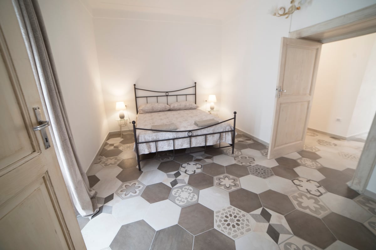 L’ entrata de Gli Affreschi apre il sipario alla personalità dell’appartamento con la pavimentazione interamente originale. Il nome è ispirato ai due affreschi presenti nella zona giorno e nella camera da letto. La cucina è dotata di un piano cottura ad induzione, completa di utensili, pentolame e servizio di piatti e bicchieri. La camera da letto vuole essere un ritorno al passato e alle tradizioni romantiche del luogo. Il bagno è adiacente la camera ed è realizzato in lastre di marmo.